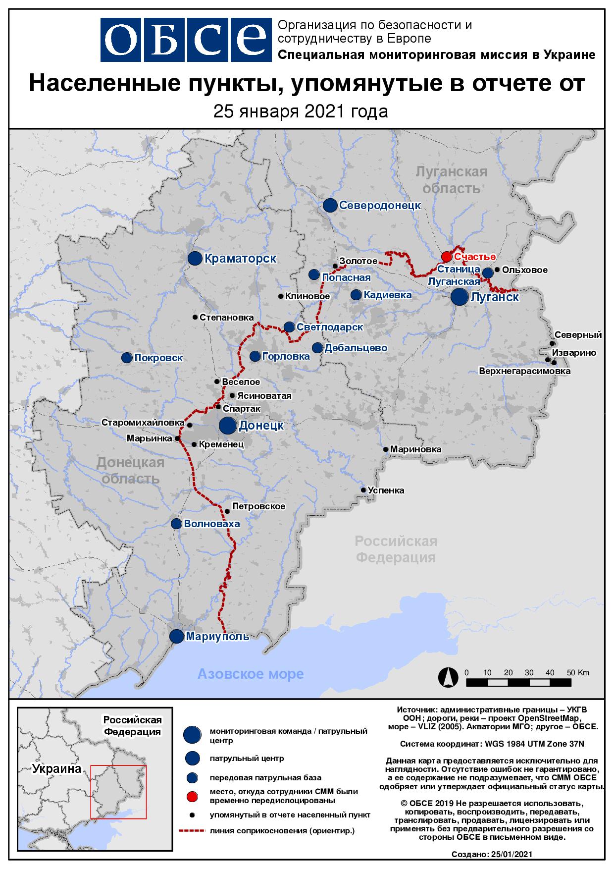 Ежедневный отчет № 18/2021, опубликованный Специальной мониторинговой миссией ОБСЕ в Украине (СММ) 25 января 2021 года