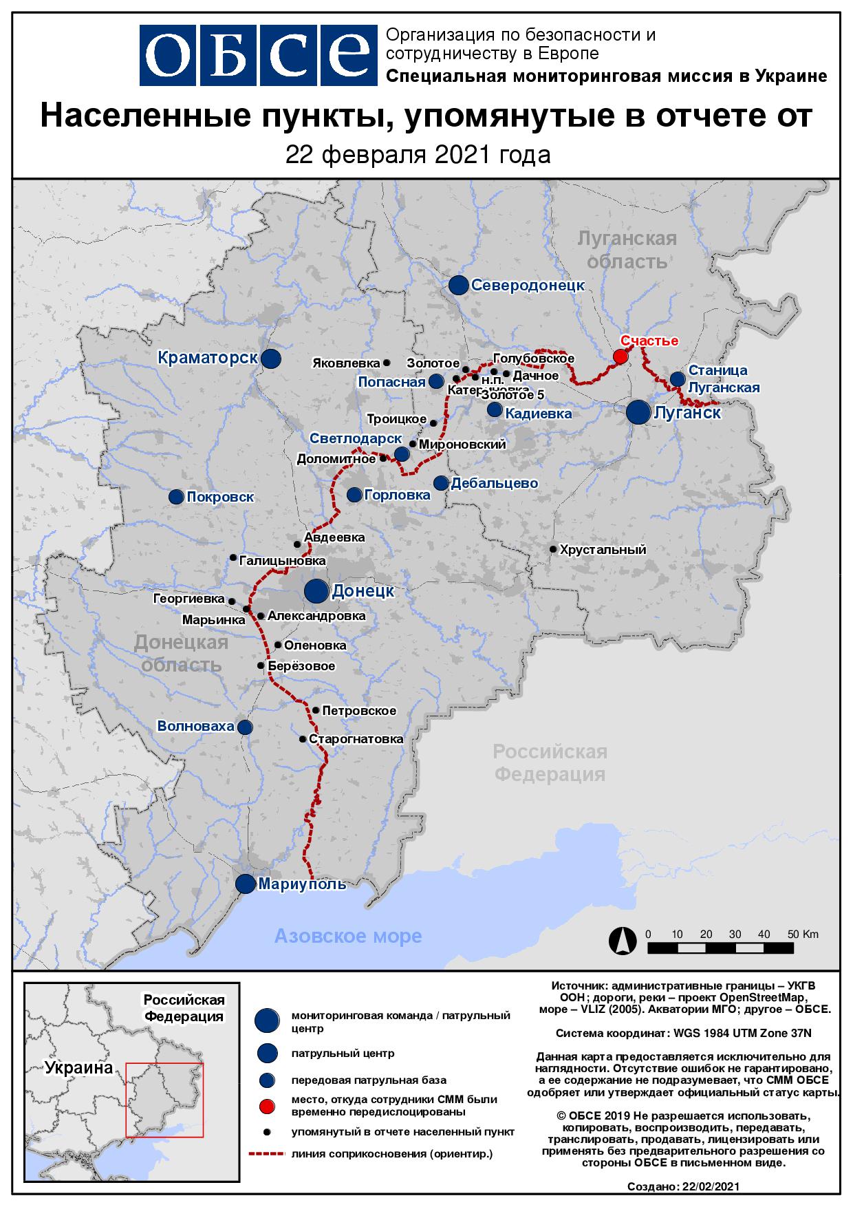 Ежедневный отчет № 42/2021, опубликованный Специальной мониторинговой миссией ОБСЕ в Украине (СММ) 22 февраля 2021 года