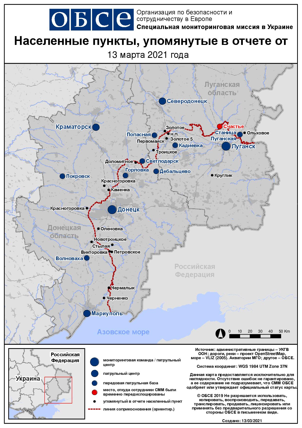 Ежедневный отчет № 59/2021, опубликованный Специальной мониторинговой миссией ОБСЕ в Украине (СММ) 13 марта 2021 года