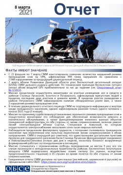В отчете представлен обзор работы Специальной мониторинговой миссии ОБСЕ (СММ), последние события и новости по состоянию на 8 марта 2021 года.