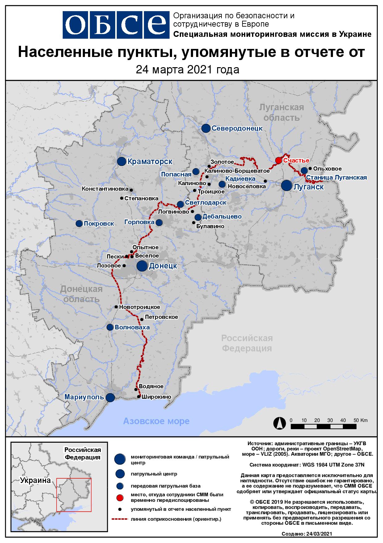 Ежедневный отчет № 68/2021, опубликованный Специальной мониторинговой миссией ОБСЕ в Украине (СММ) 24 марта 2021 года