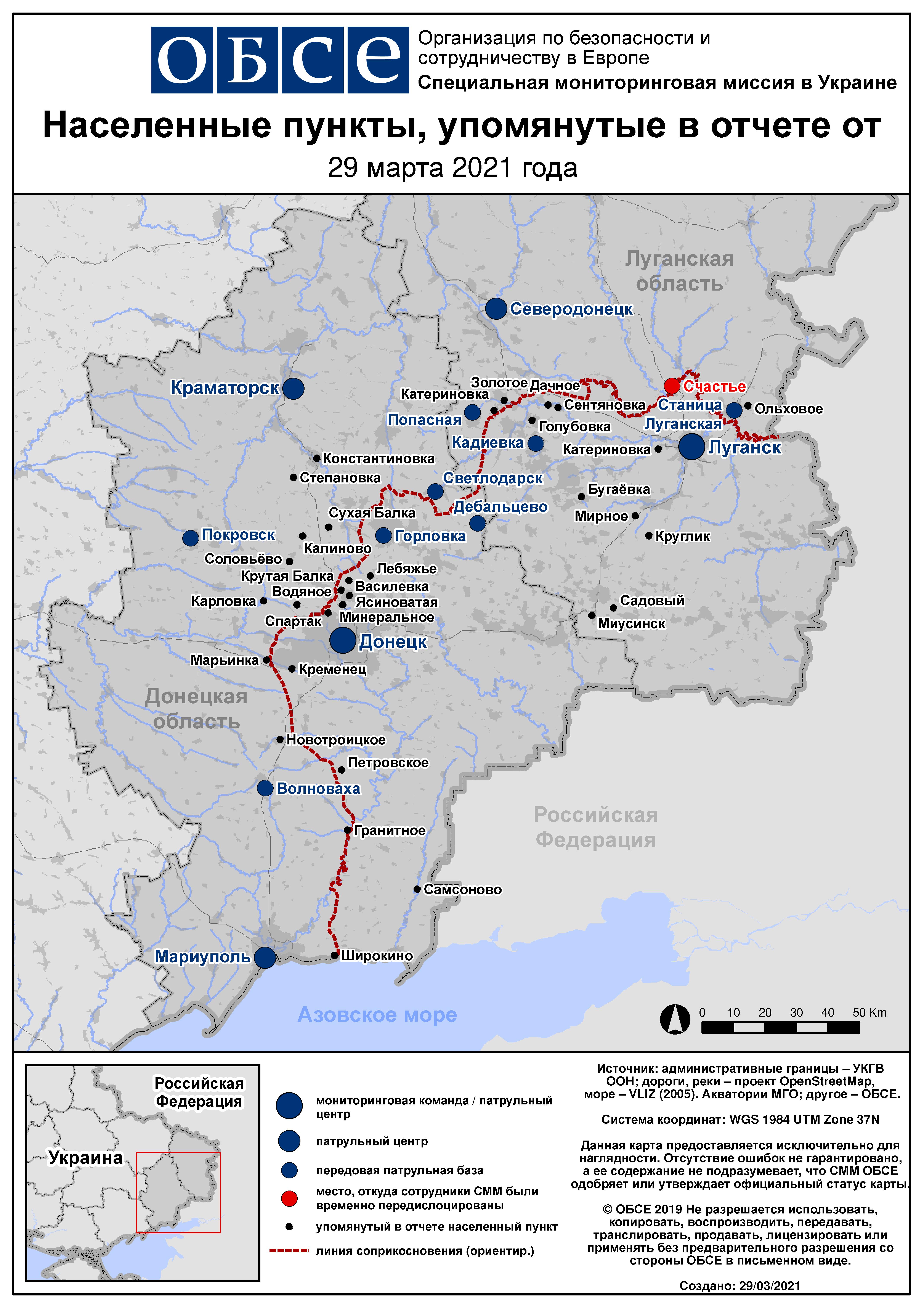 Ежедневный отчет № 72/2021, опубликованный Специальной мониторинговой миссией ОБСЕ в Украине (СММ) 29 марта 2021 года