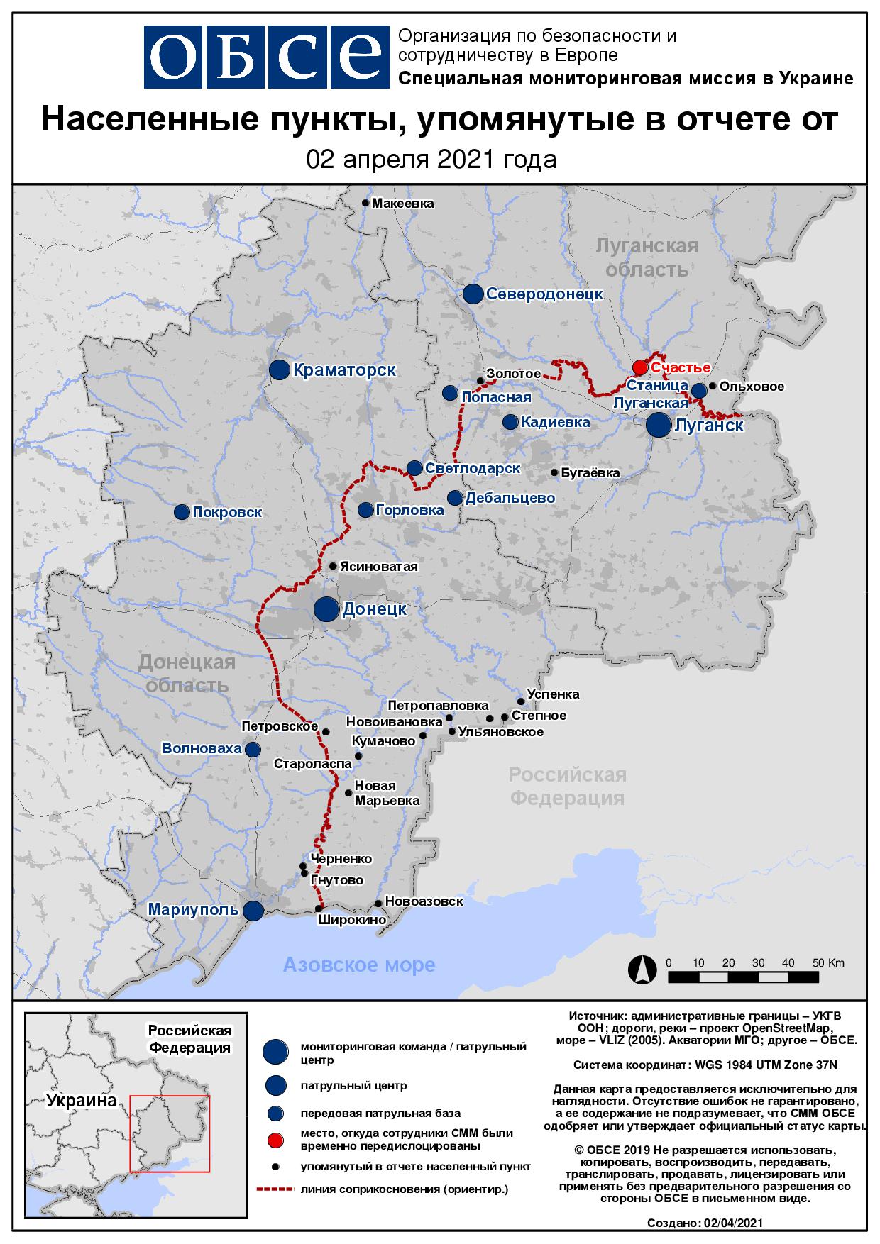 Ежедневный отчет № 76/2021, опубликованный Специальной мониторинговой миссией ОБСЕ в Украине (СММ) 2 апреля 2021 года