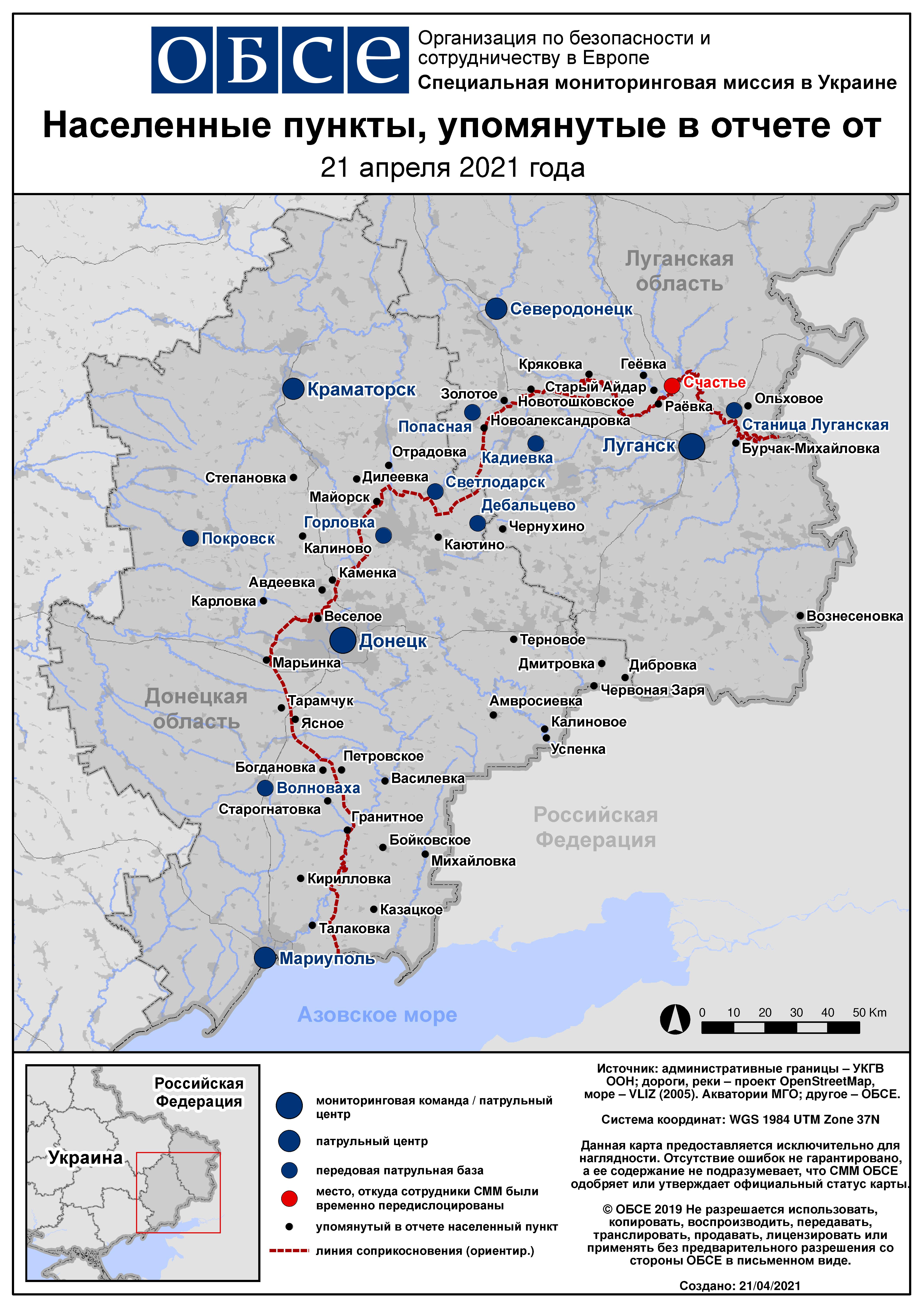Ежедневный отчет № 91/2021, опубликованный Специальной мониторинговой миссией ОБСЕ в Украине (СММ) 21 апреля 2021 года