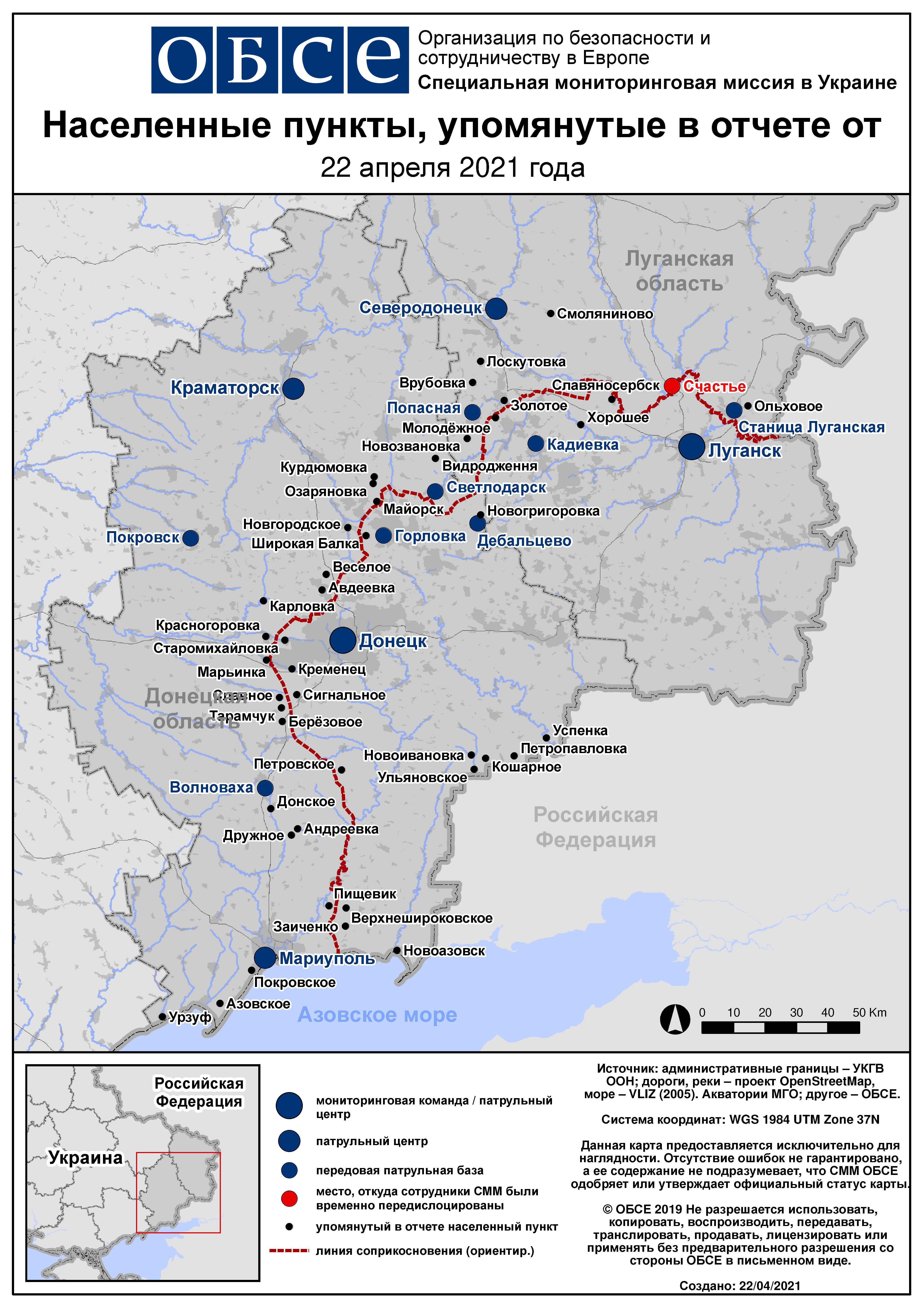 Ежедневный отчет № 92/2021, опубликованный Специальной мониторинговой миссией ОБСЕ в Украине (СММ) 22 апреля 2021 года