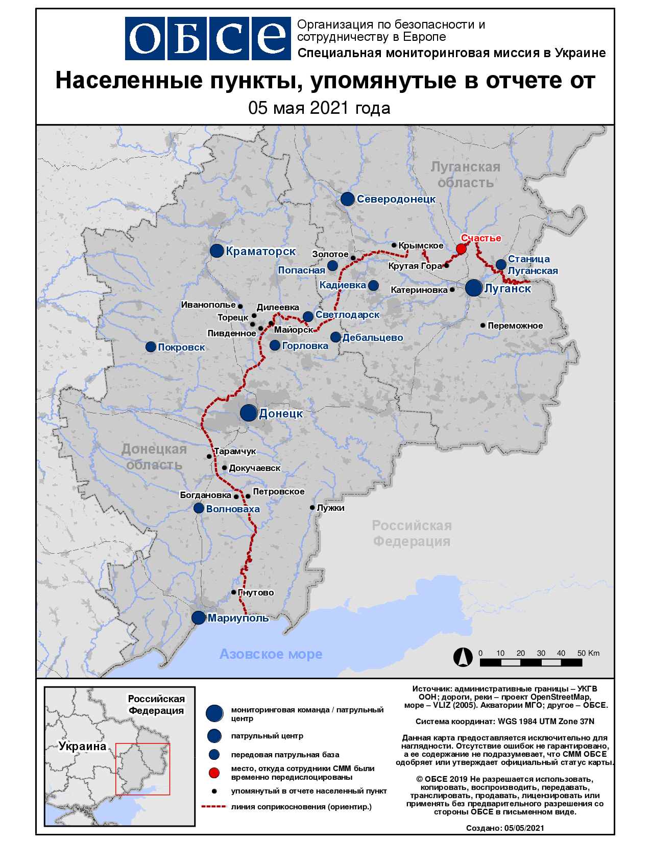 Ежедневный отчет № 102/2021, опубликованный Специальной мониторинговой миссией ОБСЕ в Украине (СММ) 5 мая 2021 года