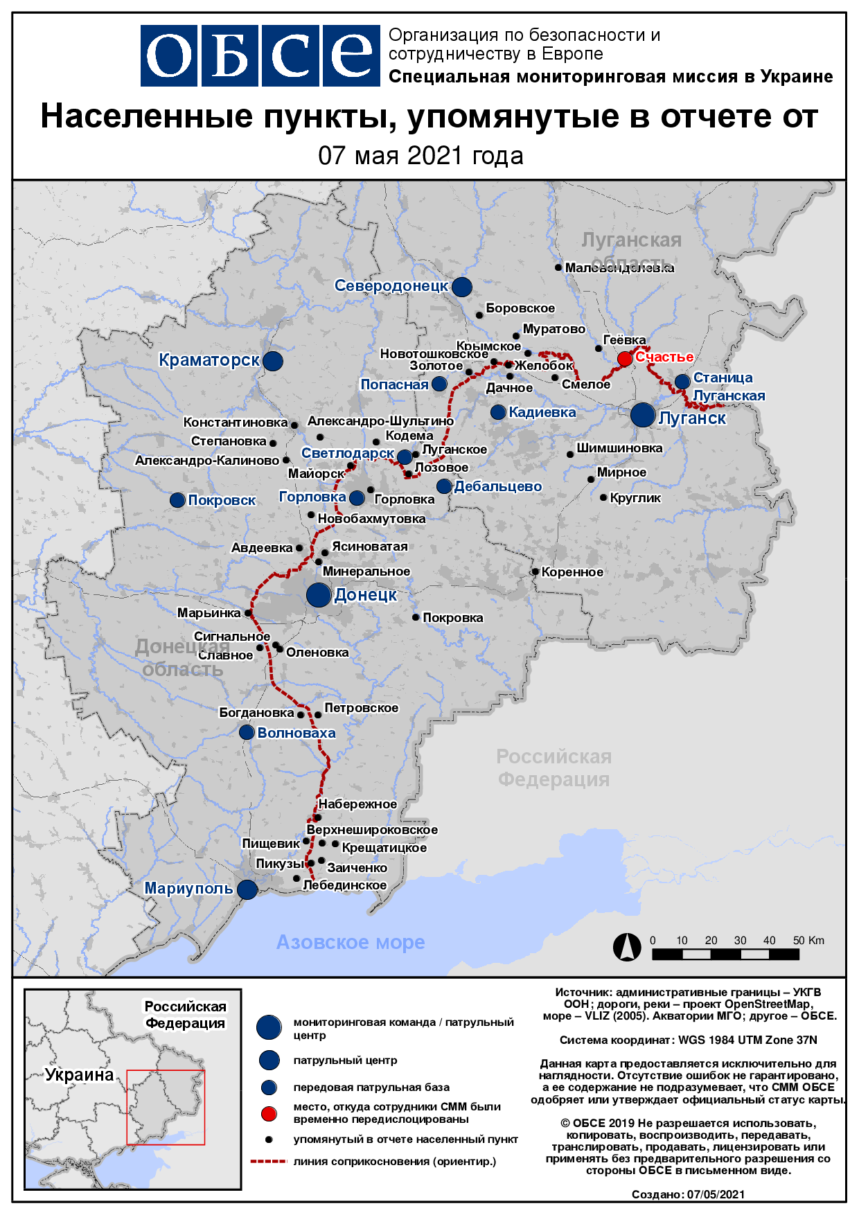 Ежедневный отчет № 104/2021, опубликованный Специальной мониторинговой миссией ОБСЕ в Украине (СММ) 7 мая 2021 года