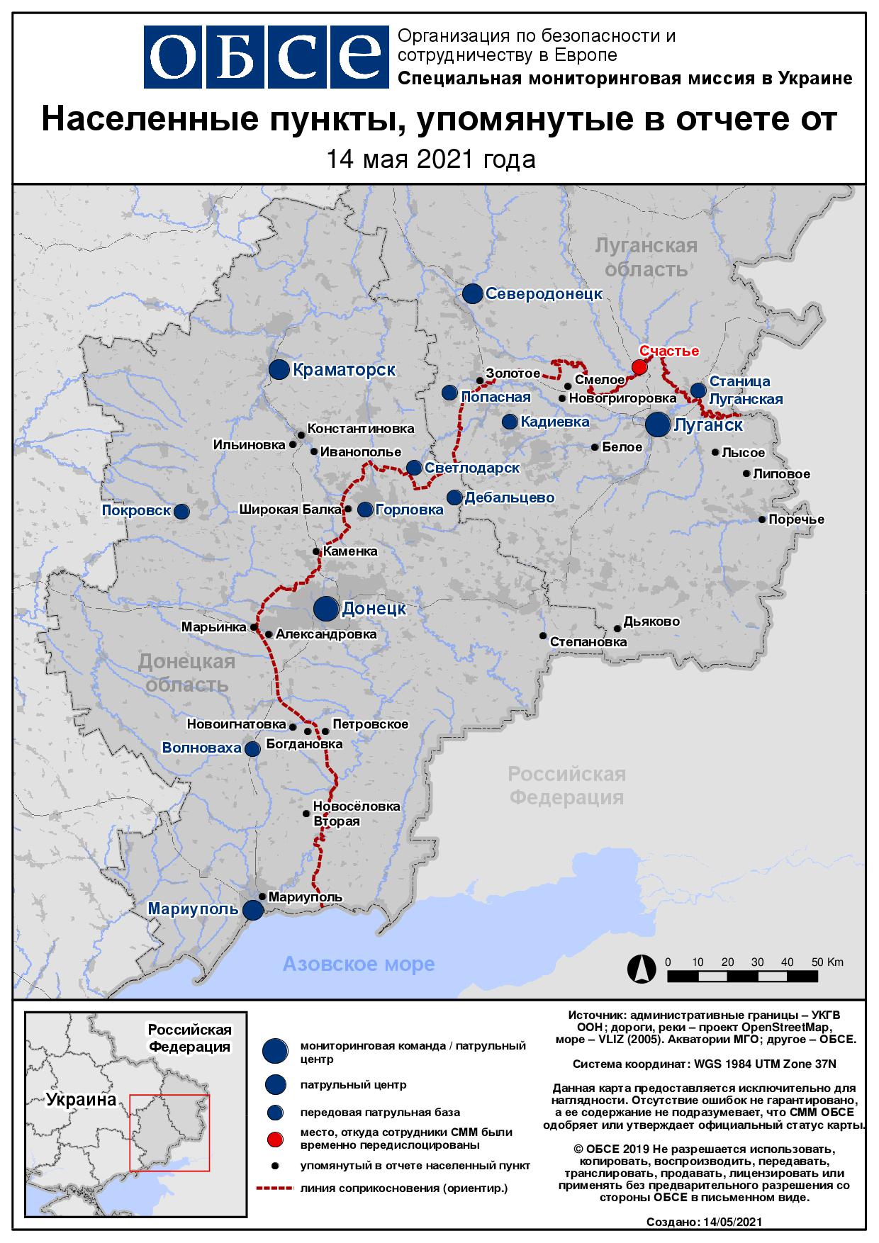 Ежедневный отчет № 110/2021, опубликованный Специальной мониторинговой миссией ОБСЕ в Украине (СММ) 14 мая 2021 года