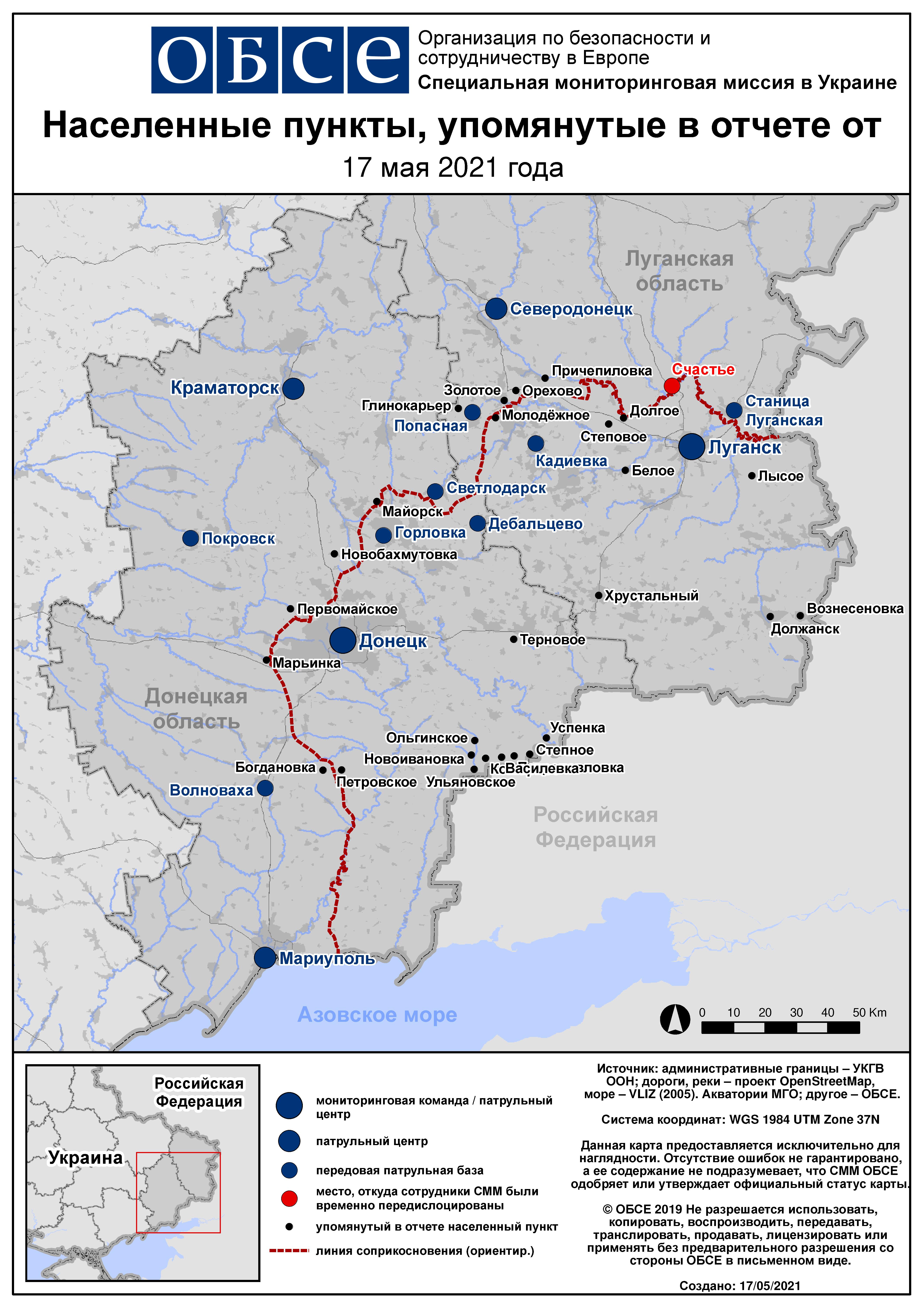 Ежедневный отчет № 112/2021, опубликованный Специальной мониторинговой миссией ОБСЕ в Украине (СММ) 17 мая 2021 года
