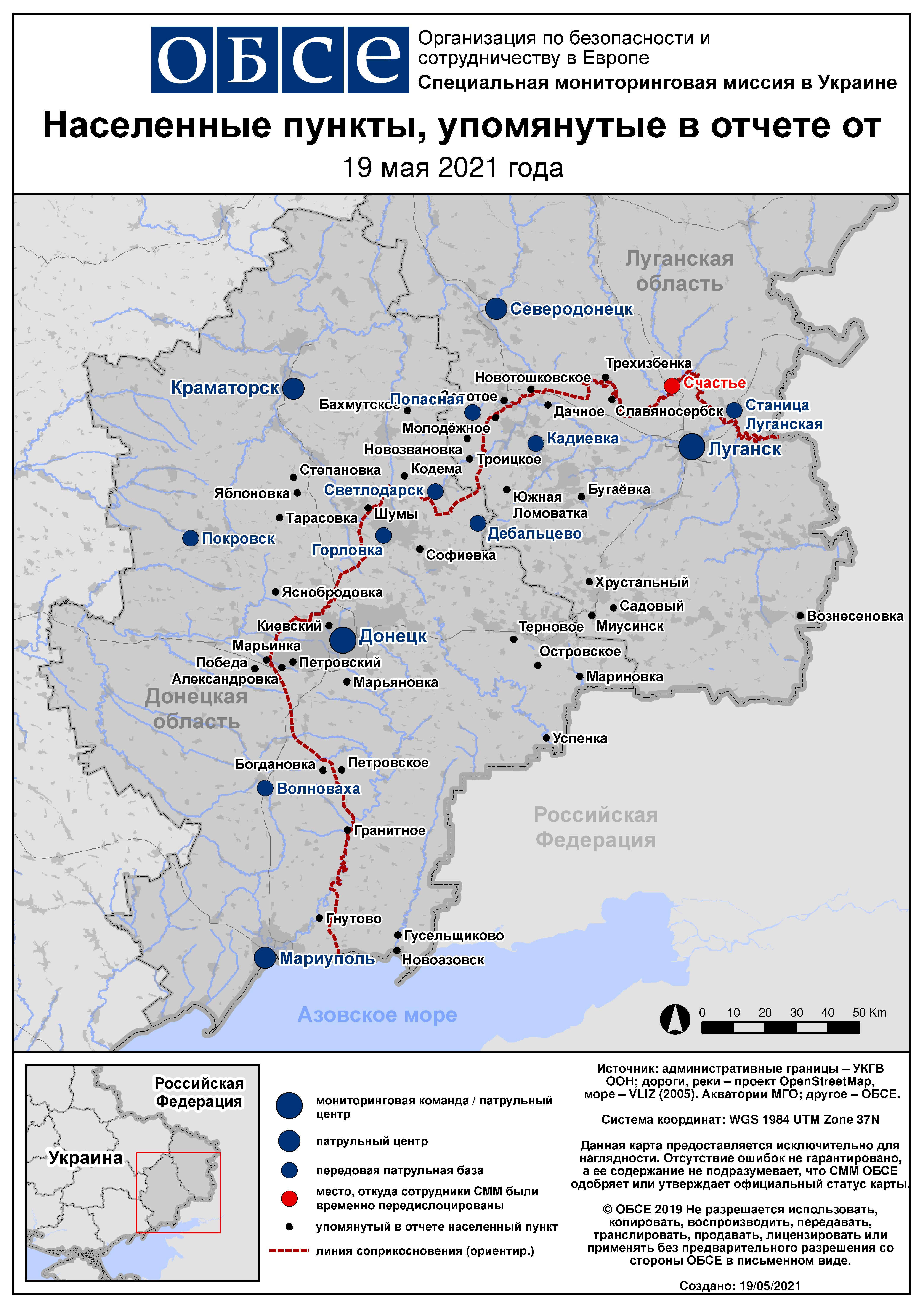 Ежедневный отчет № 114/2021, опубликованный Специальной мониторинговой миссией ОБСЕ в Украине (СММ) 19 мая 2021 года