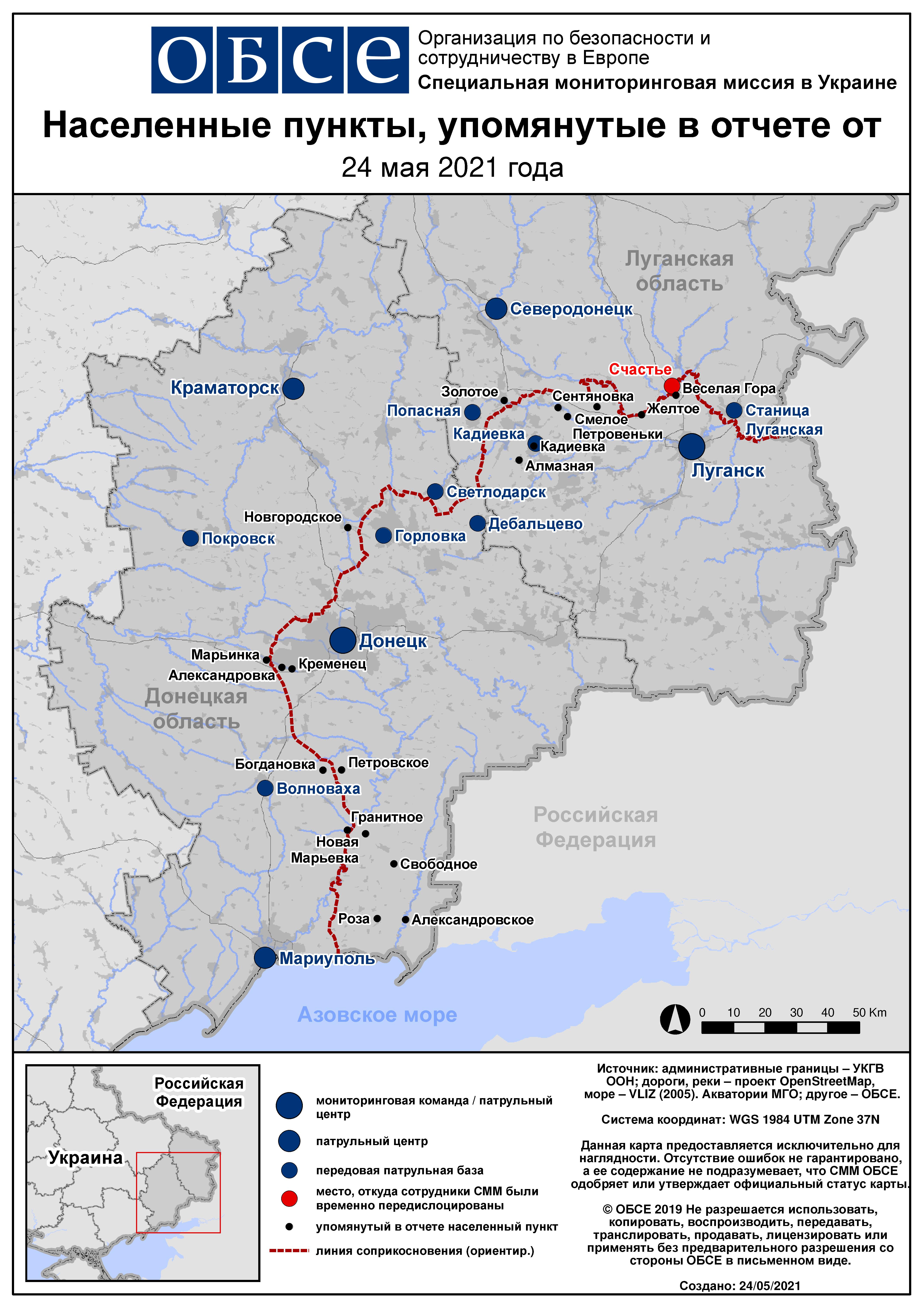 Ежедневный отчет № 118/2021, опубликованный Специальной мониторинговой миссией ОБСЕ в Украине (СММ) 24 мая 2021 года