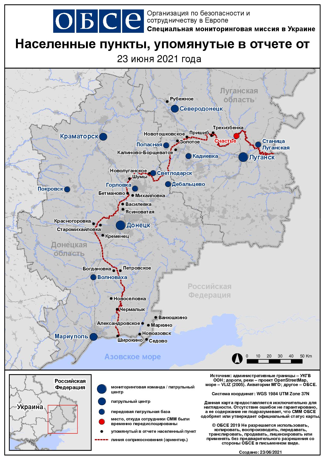 Ежедневный отчет № 144/2021, опубликованный Специальной мониторинговой миссией ОБСЕ в Украине (СММ) 23 июня 2021 года