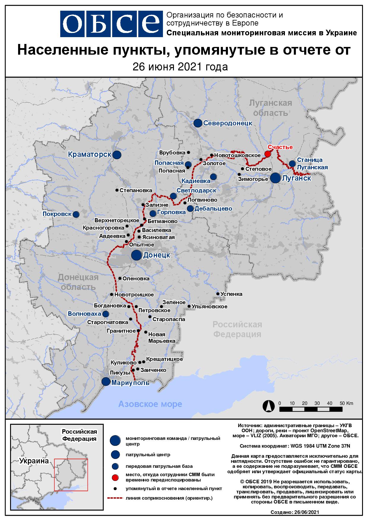 Ежедневный отчет № 147/2021, опубликованный Специальной мониторинговой миссией ОБСЕ в Украине (СММ) 26 июня 2021 года