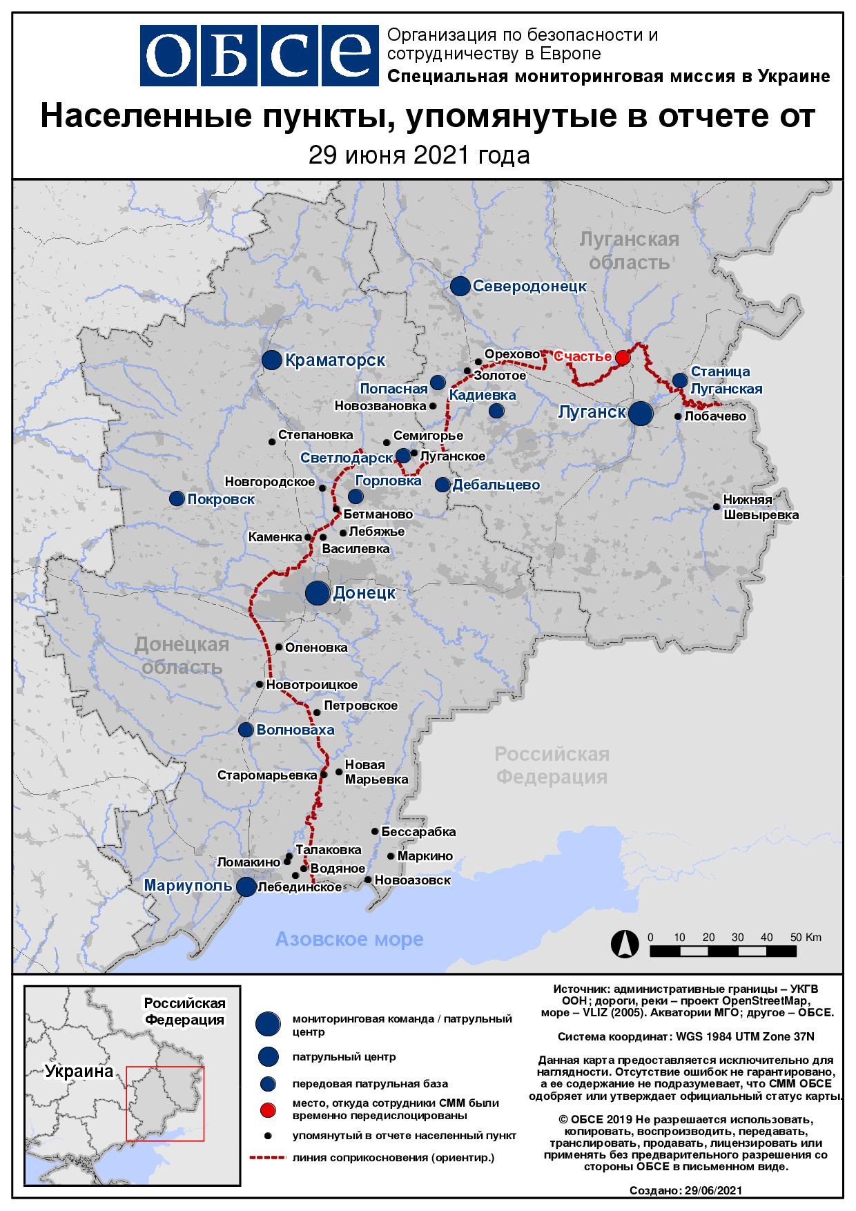 Ежедневный отчет № 149/2021, опубликованный Специальной мониторинговой миссией ОБСЕ в Украине (СММ) 29 июня 2021 года