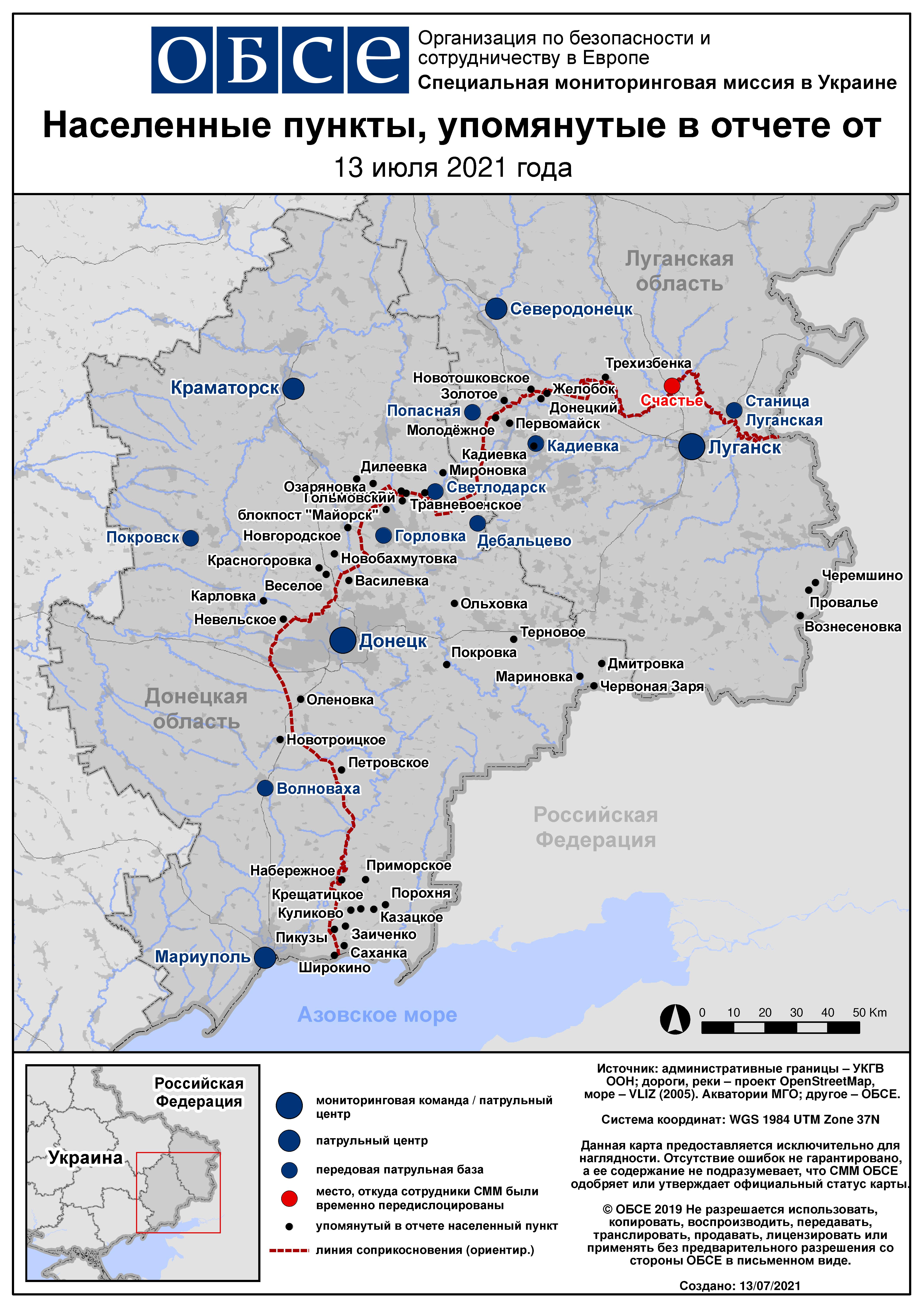 Ежедневный отчет № 161/2021, опубликованный Специальной мониторинговой миссией ОБСЕ в Украине (СММ) 13 июля 2021 года