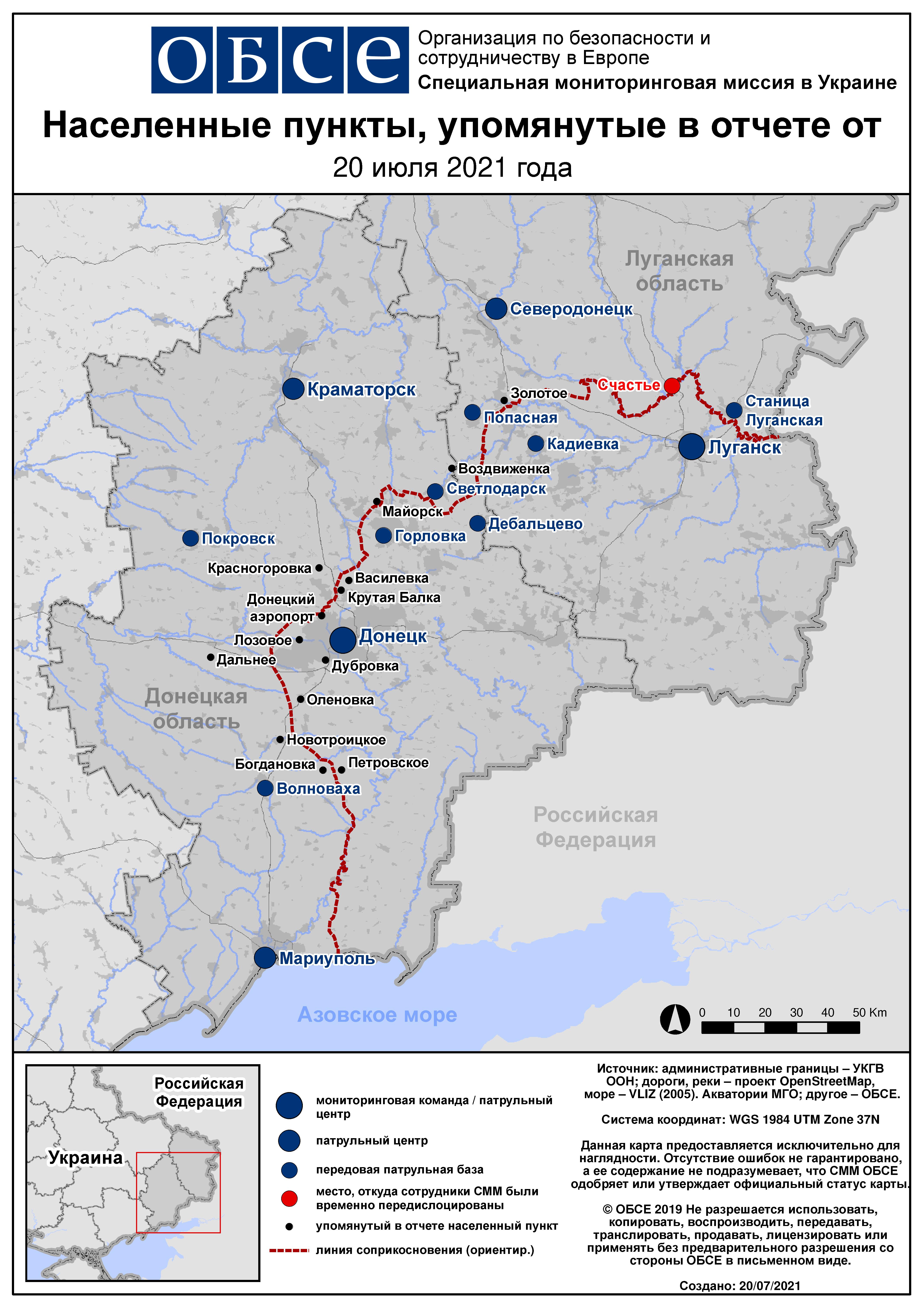 Ежедневный отчет № 167/2021, опубликованный Специальной мониторинговой миссией ОБСЕ в Украине (СММ) 20 июля 2021 года
