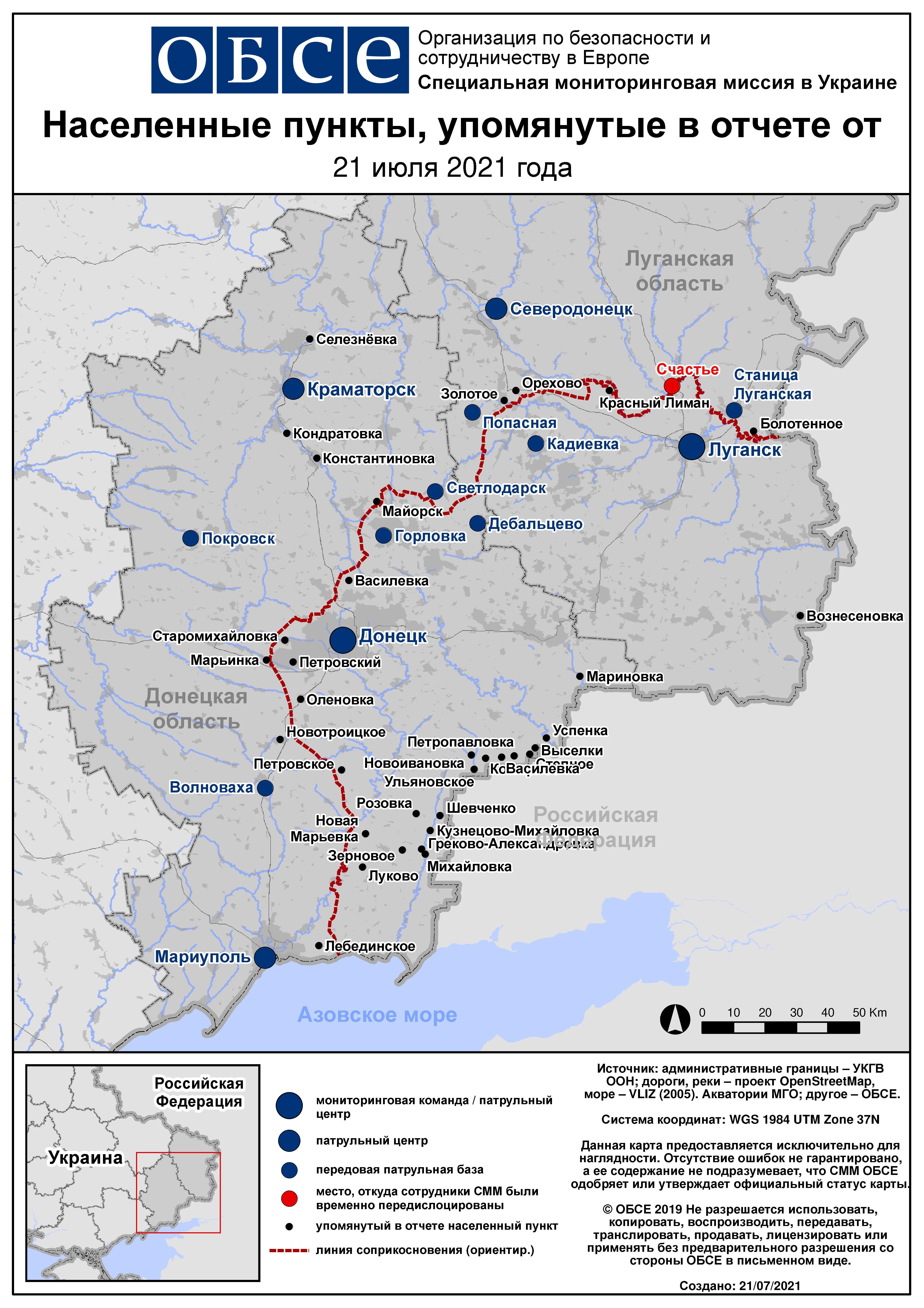 Ежедневный отчет № 168/2021, опубликованный Специальной мониторинговой миссией ОБСЕ в Украине (СММ) 21 июля 2021 года