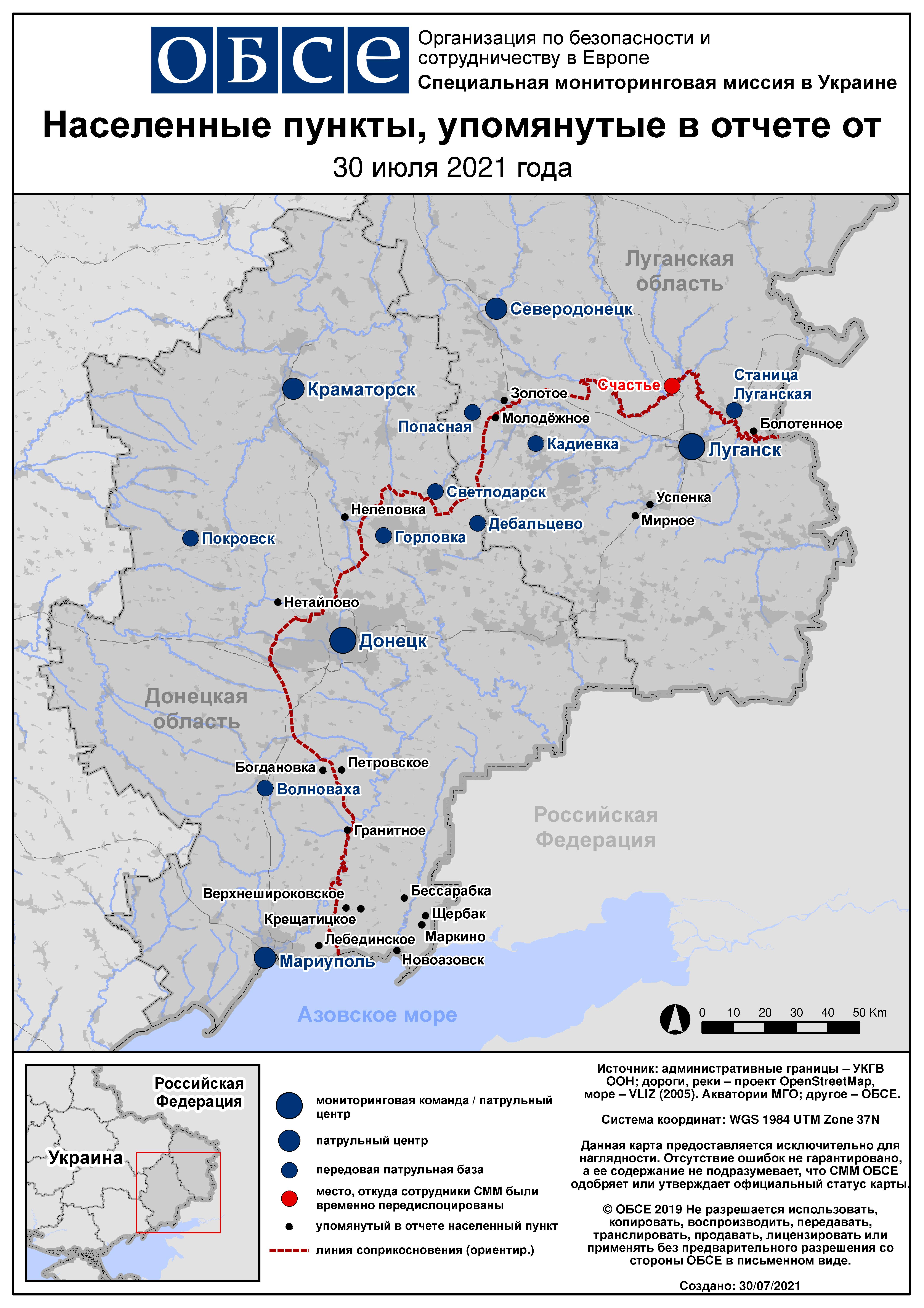 Ежедневный отчет № 176/2021, опубликованный Специальной мониторинговой миссией ОБСЕ в Украине (СММ) 30 июля 2021 года
