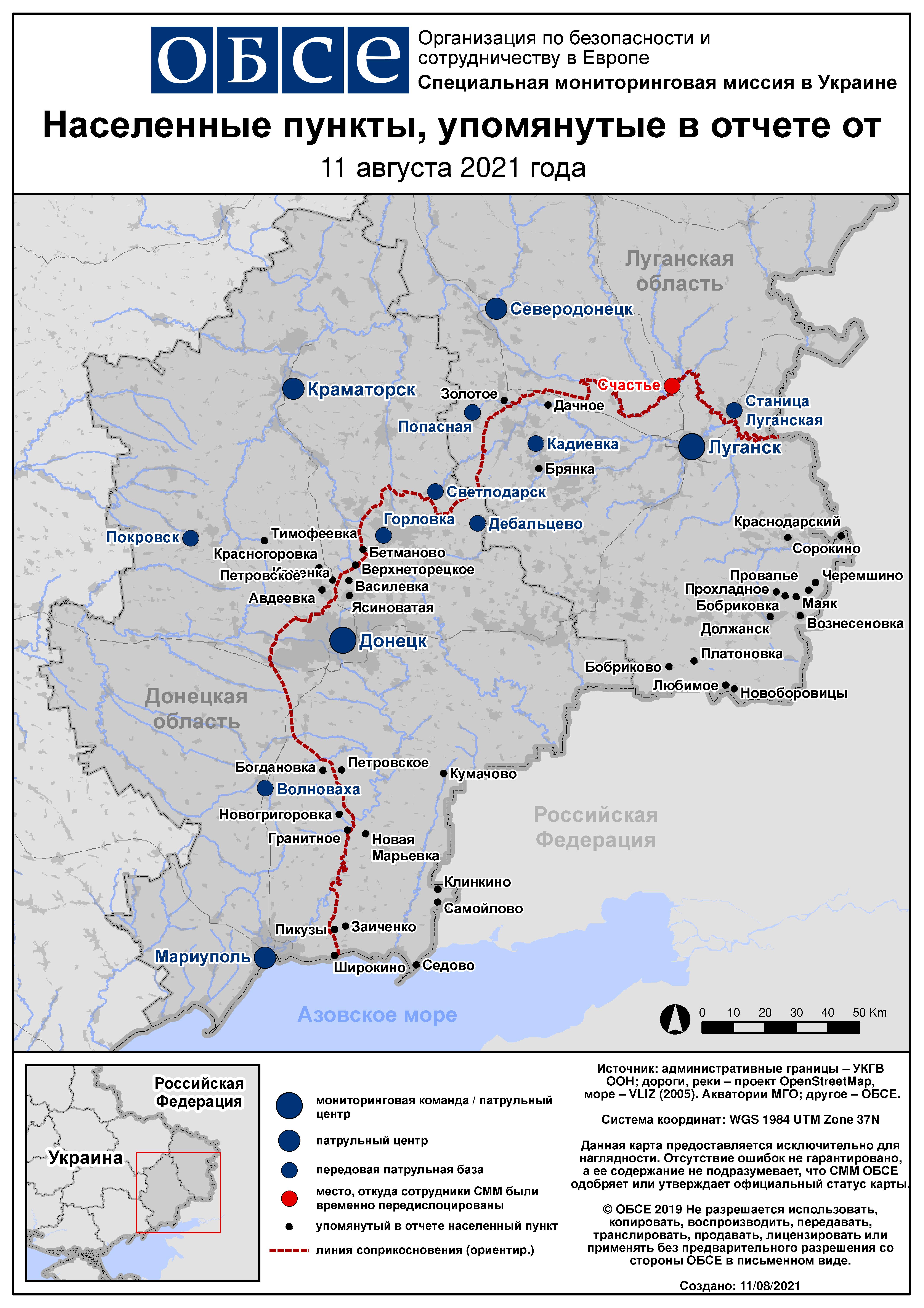 Ежедневный отчет № 186/2021, опубликованный Специальной мониторинговой миссией ОБСЕ в Украине (СММ) 11 августа 2021 года