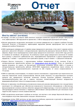 Отчет о работе по состоянию на 9 августа 2021 года_В отчете представлен обзор работы Специальной мониторинговой миссии ОБСЕ (СММ), последние события и новости по состоянию на 9 августа 2021 года.