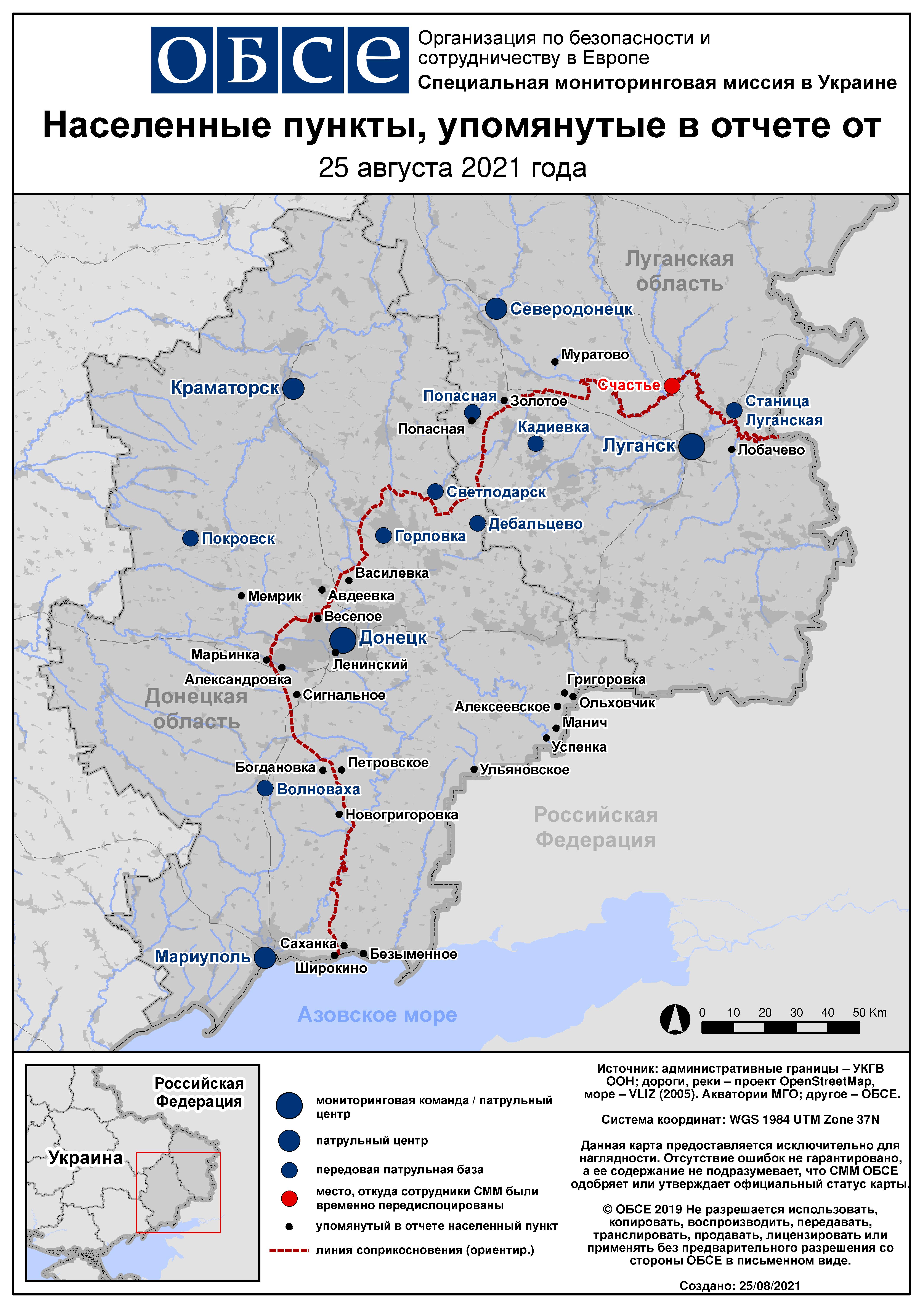 Ежедневный отчет № 198/2021, опубликованный Специальной мониторинговой миссией ОБСЕ в Украине (СММ) 25 августа 2021 года