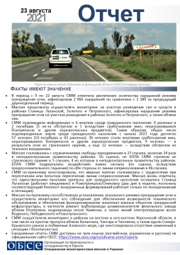В отчете представлен обзор работы Специальной мониторинговой миссии ОБСЕ (СММ), последние события и новости по состоянию на 23 августа 2021 года.
