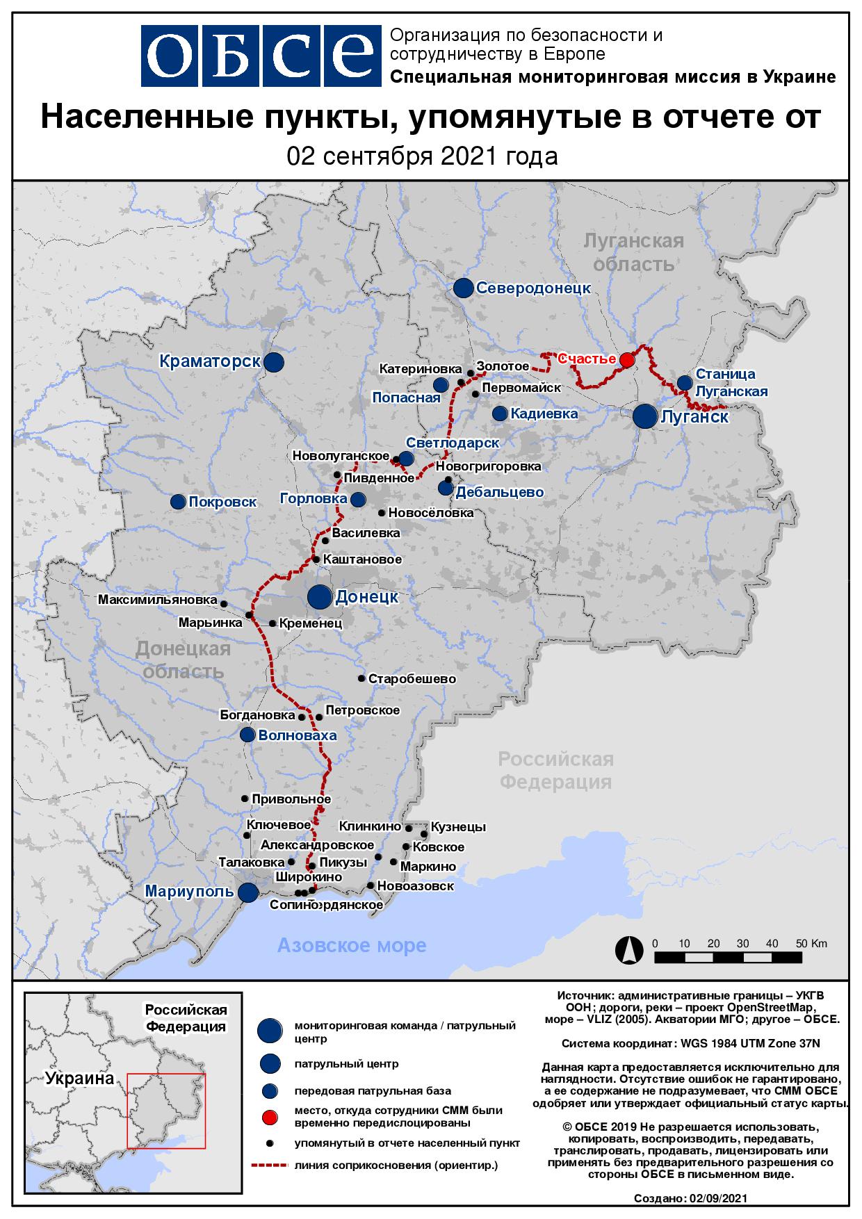 Ежедневный отчет № 205/2021, опубликованный Специальной мониторинговой миссией ОБСЕ в Украине (СММ) 2 сентября 2021 года
