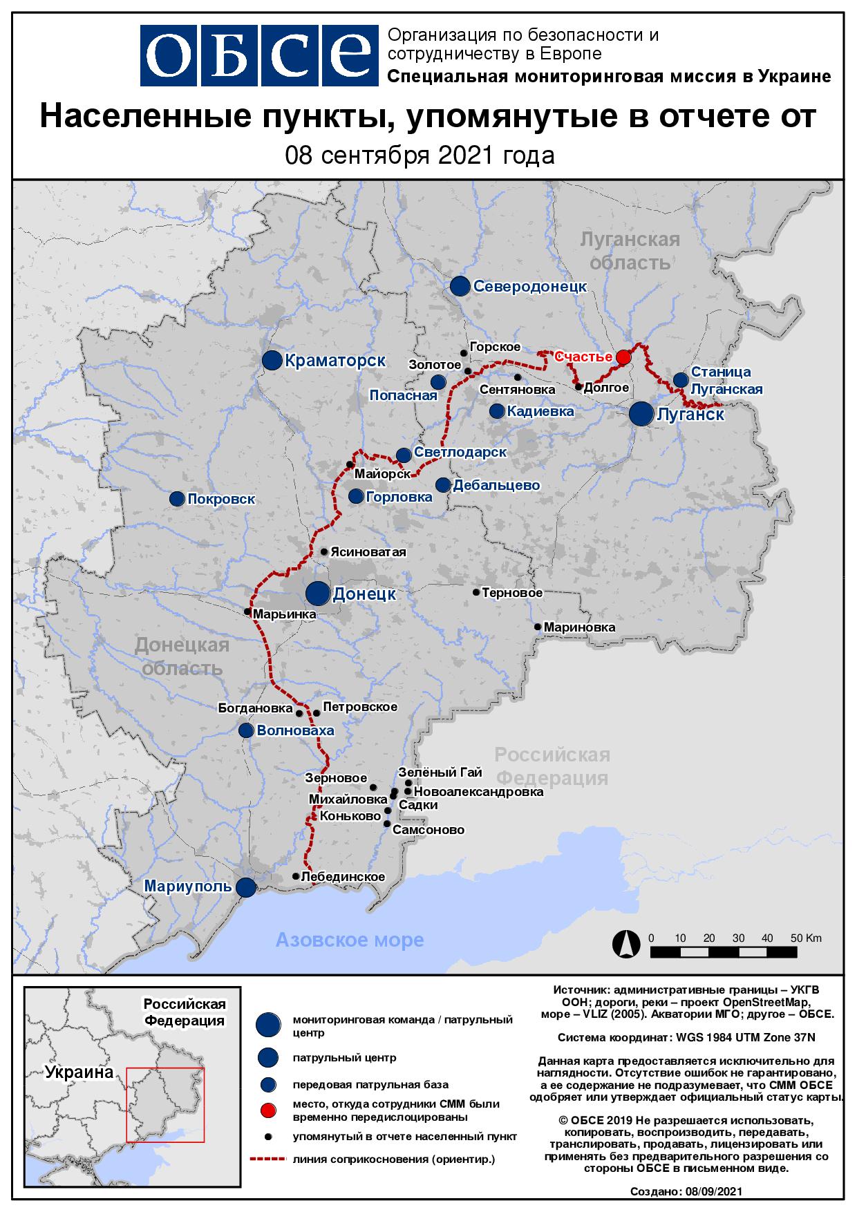 Ежедневный отчет № 210/2021, опубликованный Специальной мониторинговой миссией ОБСЕ в Украине (СММ) 8 сентября 2021 года