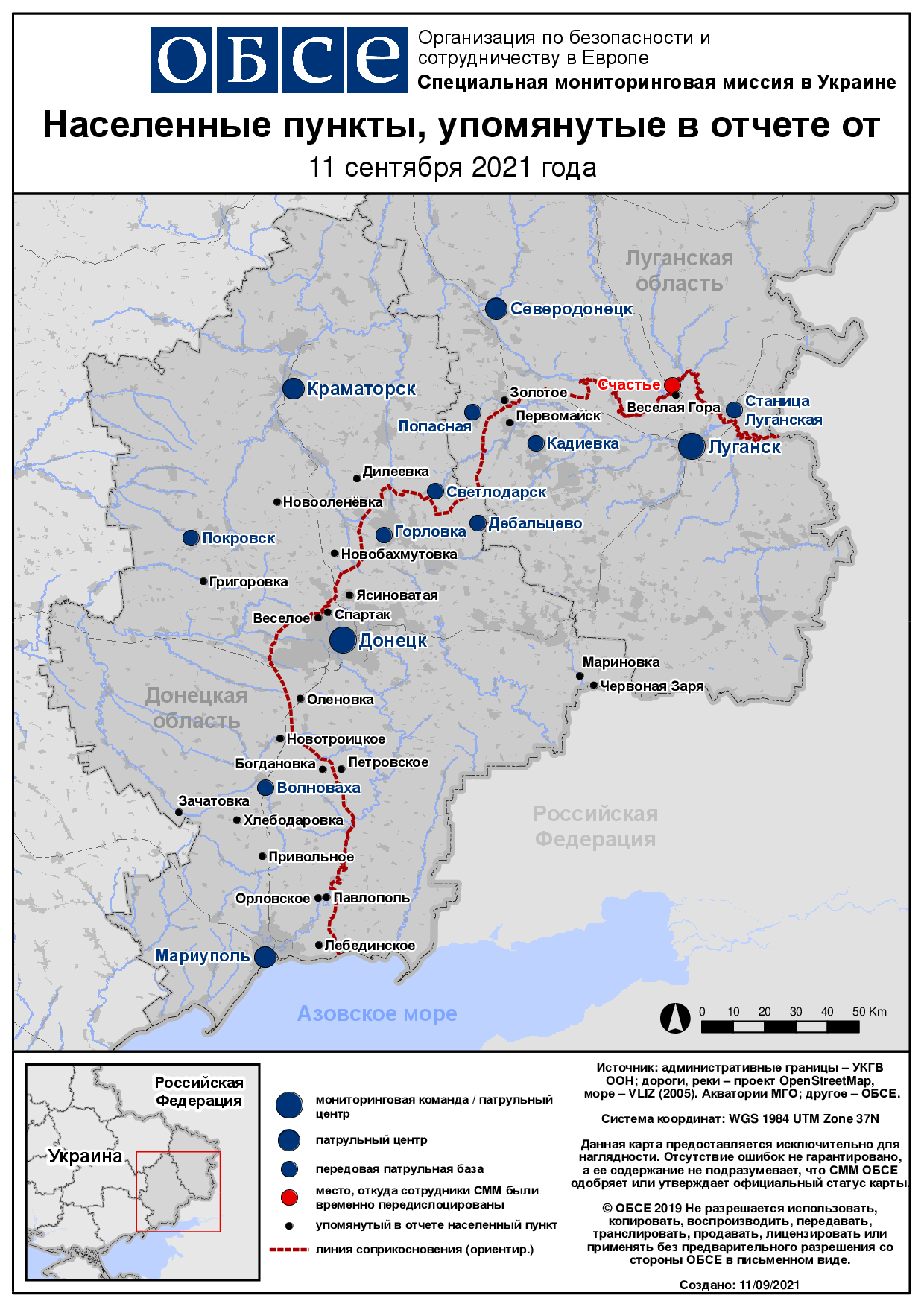 Ежедневный отчет № 213/2021, опубликованный Специальной мониторинговой миссией ОБСЕ в Украине (СММ) 11 сентября 2021 года