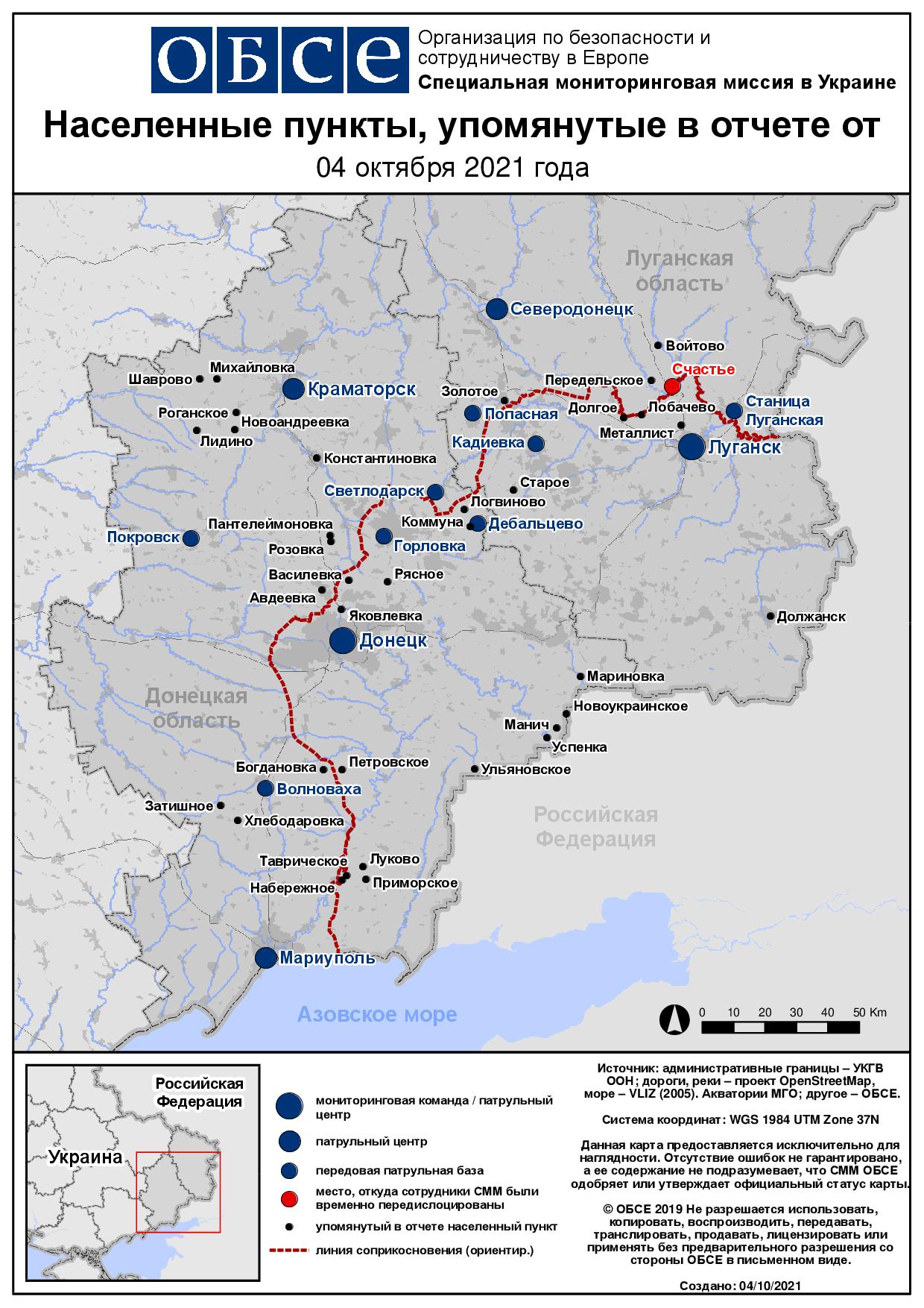 Ежедневный отчет № 232/2021, опубликованный Специальной мониторинговой миссией ОБСЕ в Украине (СММ) 4 октября 2021 года