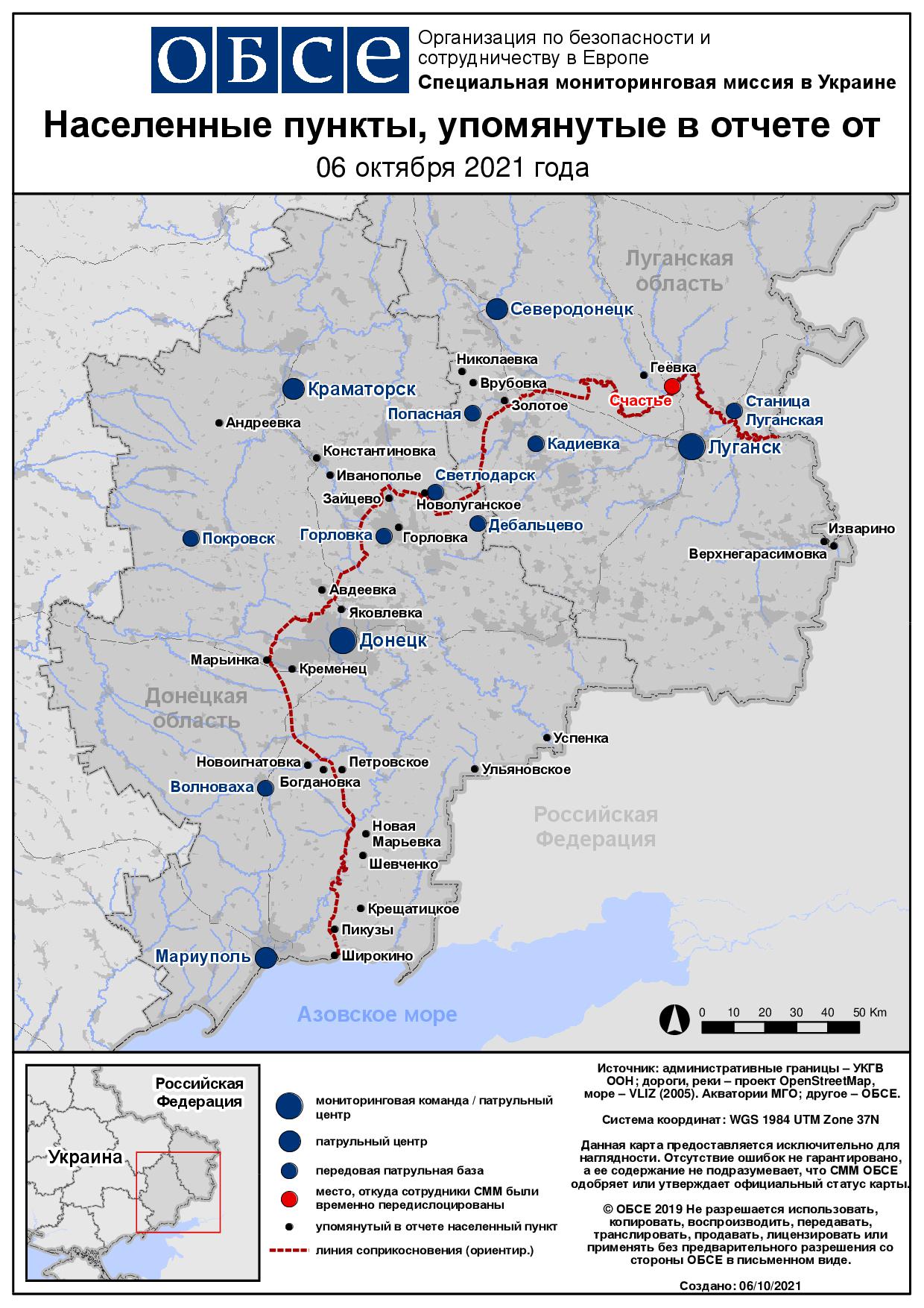 Ежедневный отчет № 234/2021, опубликованный Специальной мониторинговой миссией ОБСЕ в Украине (СММ) 6 октября 2021 года