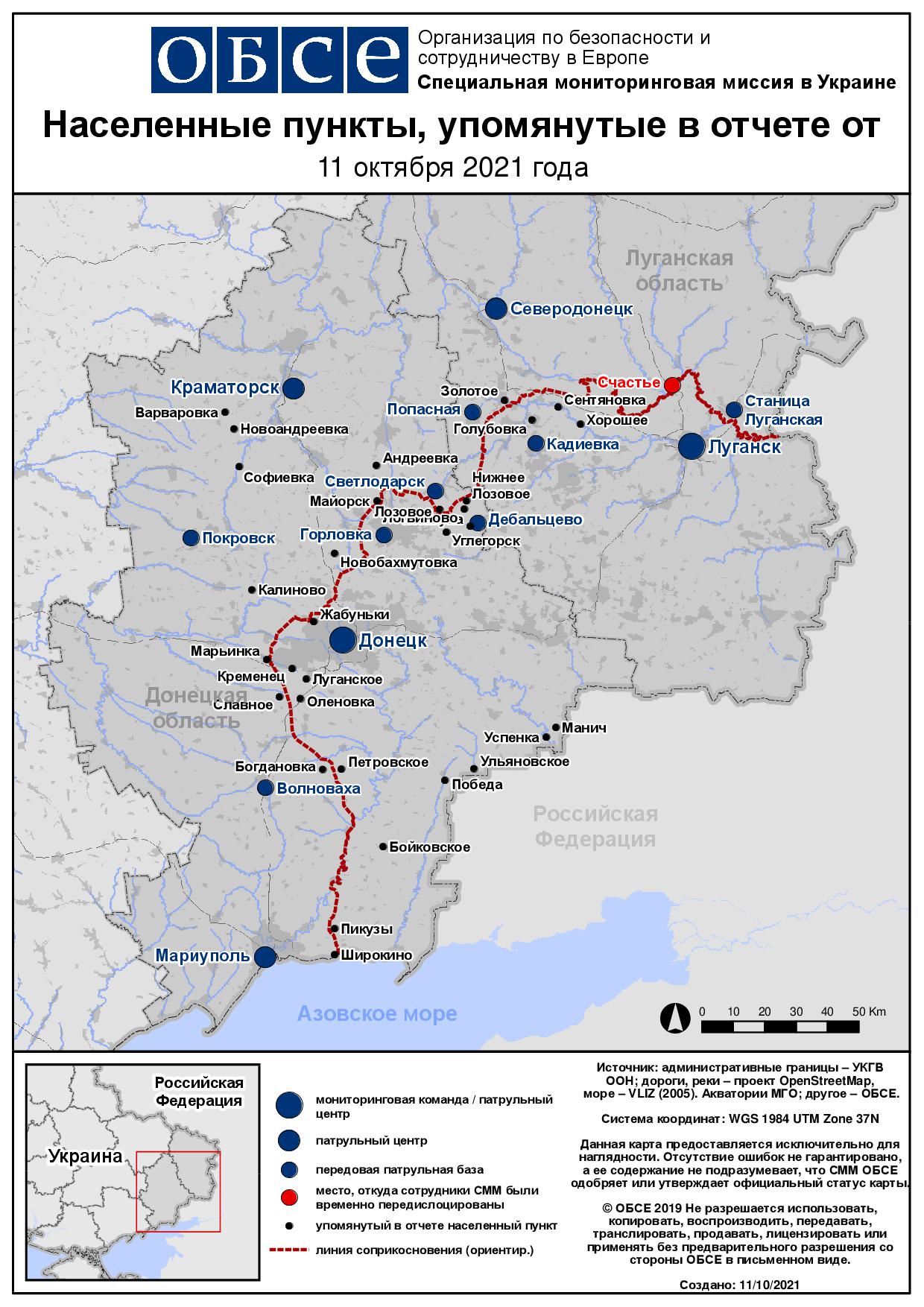 Ежедневный отчет № 238/2021, опубликованный Специальной мониторинговой миссией ОБСЕ в Украине (СММ) 11 октября 2021 года