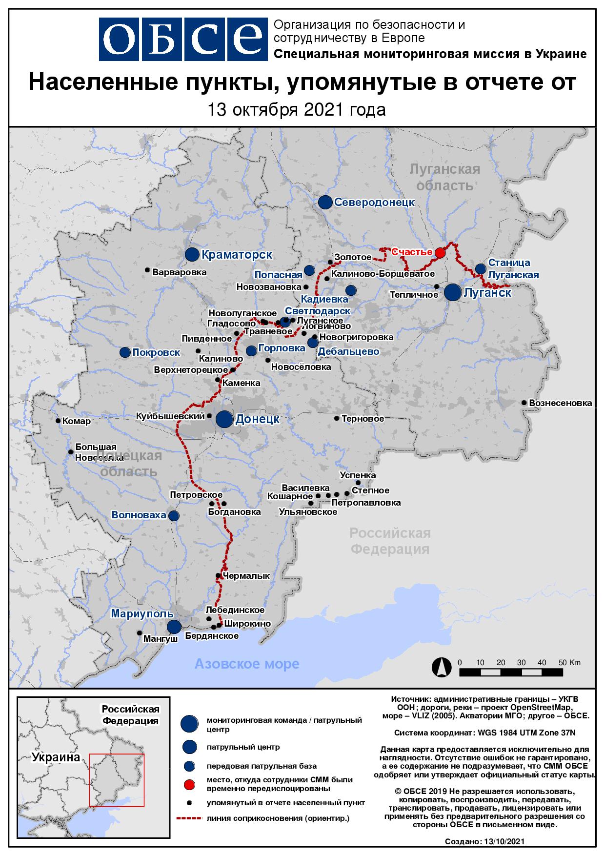 Ежедневный отчет № 240/2021, опубликованный Специальной мониторинговой миссией ОБСЕ в Украине (СММ) 13 октября 2021 года
