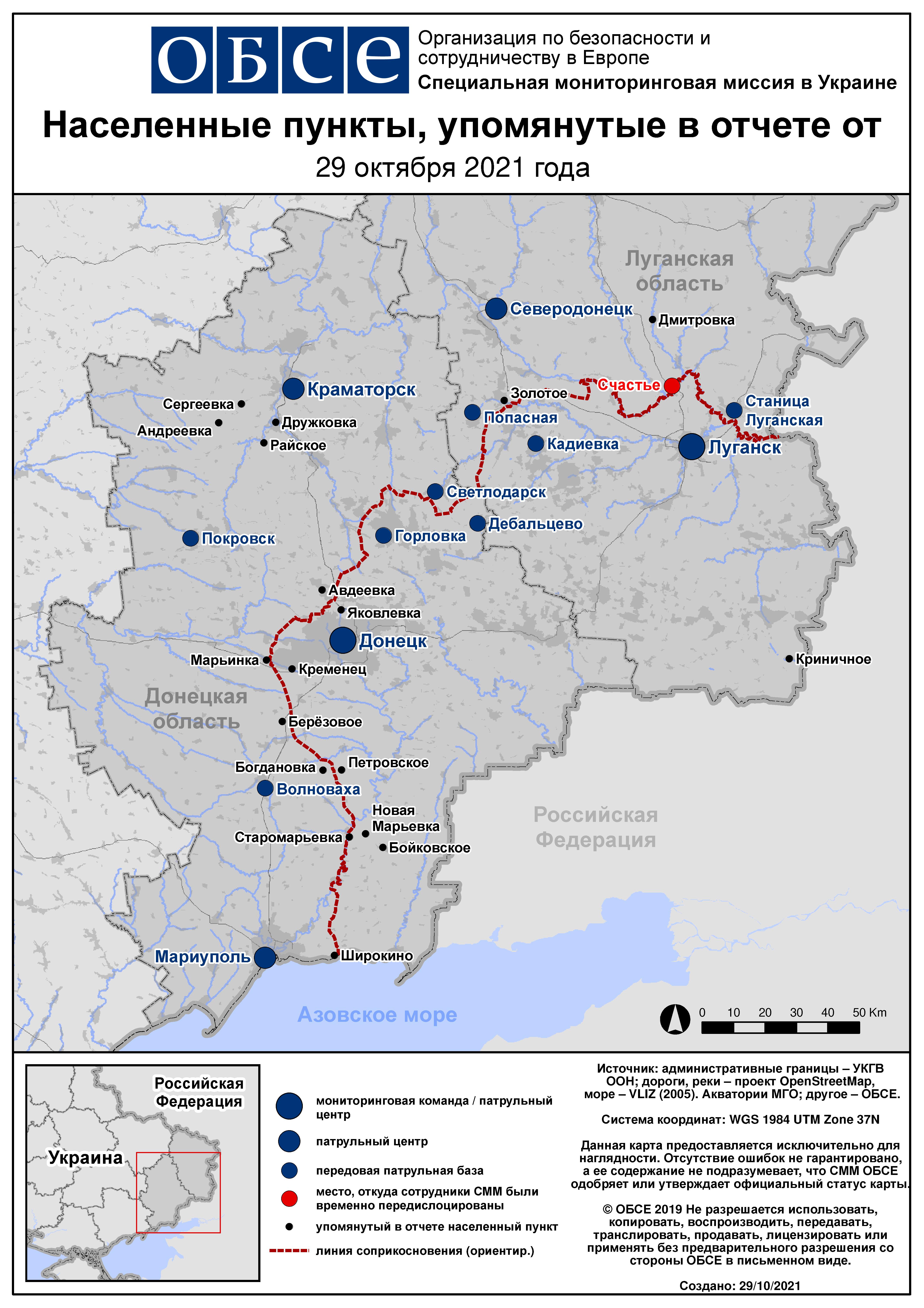 Ежедневный отчет № 254/2021, опубликованный Специальной мониторинговой миссией ОБСЕ в Украине (СММ) 29 октября 2021 года