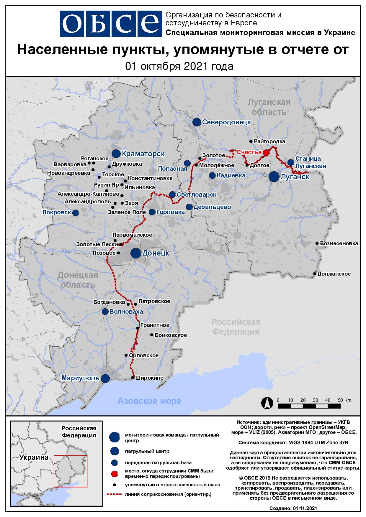 Ежедневный отчет № 256/2021, опубликованный Специальной мониторинговой миссией ОБСЕ в Украине (СММ) 1 ноября 2021 года