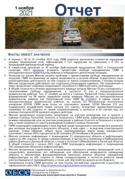 В отчете представлен обзор работы Специальной мониторинговой миссии ОБСЕ (СММ), последние события и новости по состоянию на 1 ноября 2021 года.