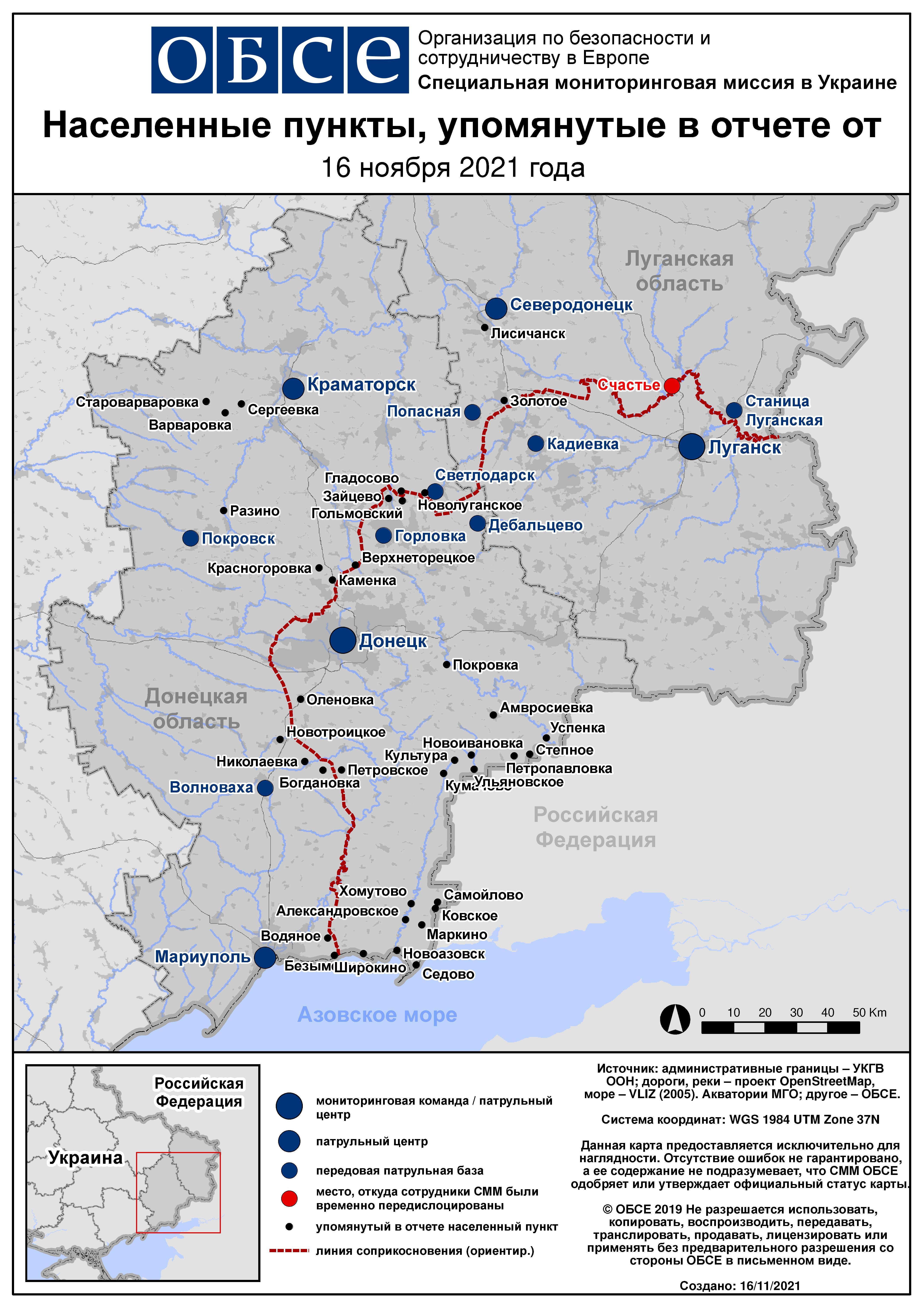 Ежедневный отчет № 269/2021, опубликованный Специальной мониторинговой миссией ОБСЕ в Украине (СММ) 16 ноября 2021 года