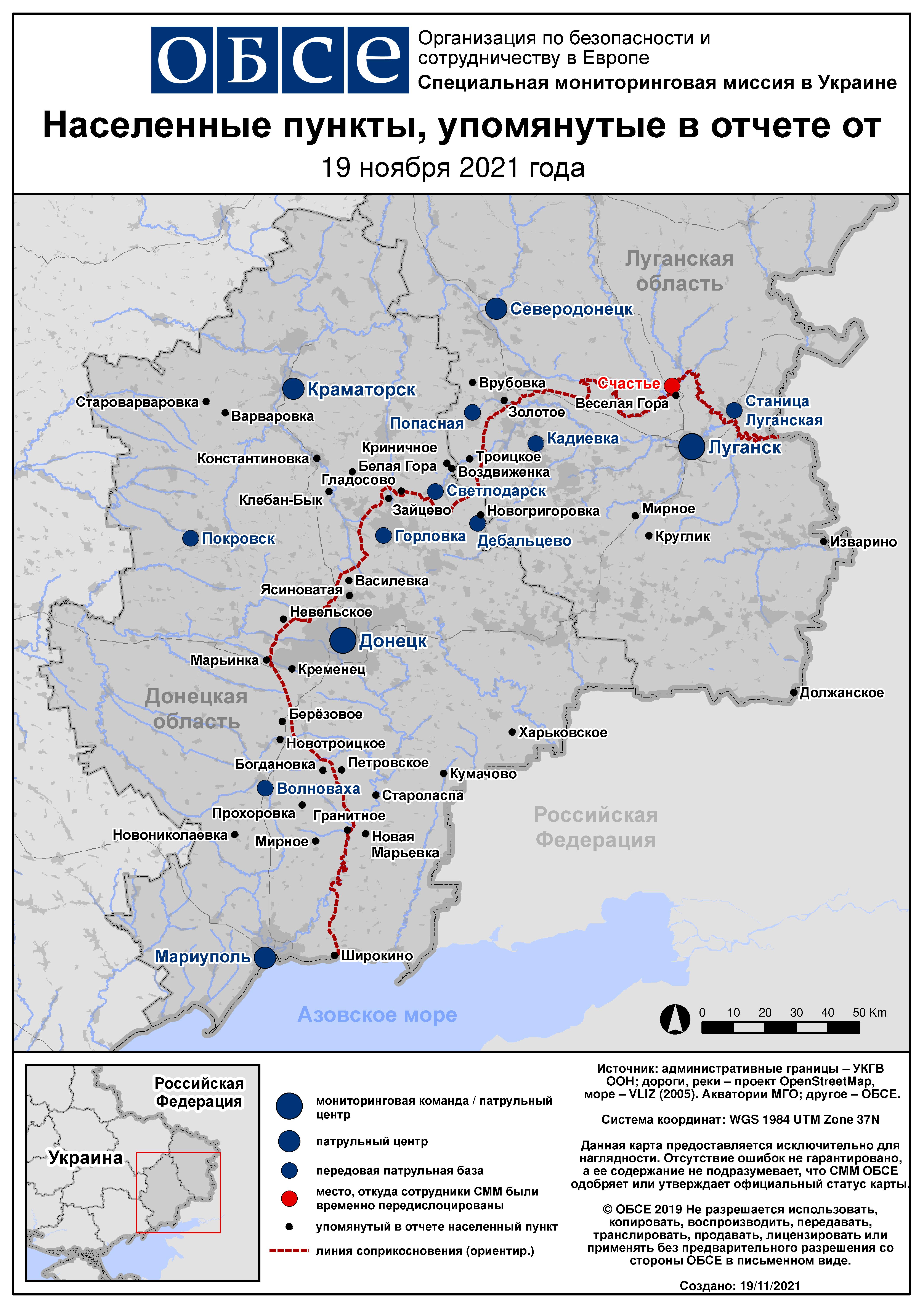 Ежедневный отчет № 272/2021, опубликованный Специальной мониторинговой миссией ОБСЕ в Украине (СММ) 19 ноября 2021 года