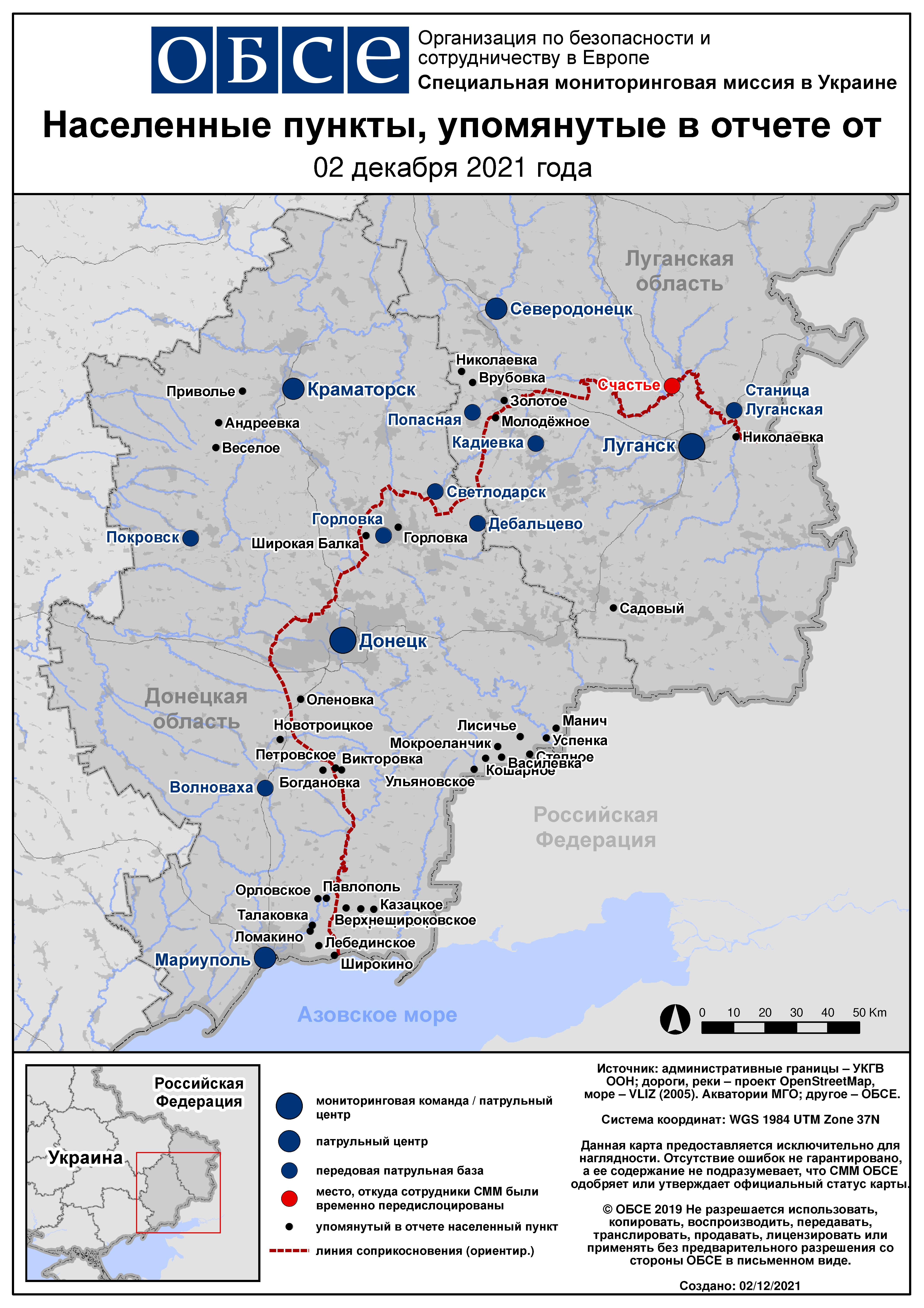 Ежедневный отчет № 283/2021, опубликованный Специальной мониторинговой миссией ОБСЕ в Украине (СММ) 2 декабря 2021 года
