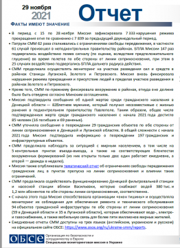 В отчете представлен обзор работы Специальной мониторинговой миссии ОБСЕ (СММ), последние события и новости по состоянию на 29 ноября 2021 года.