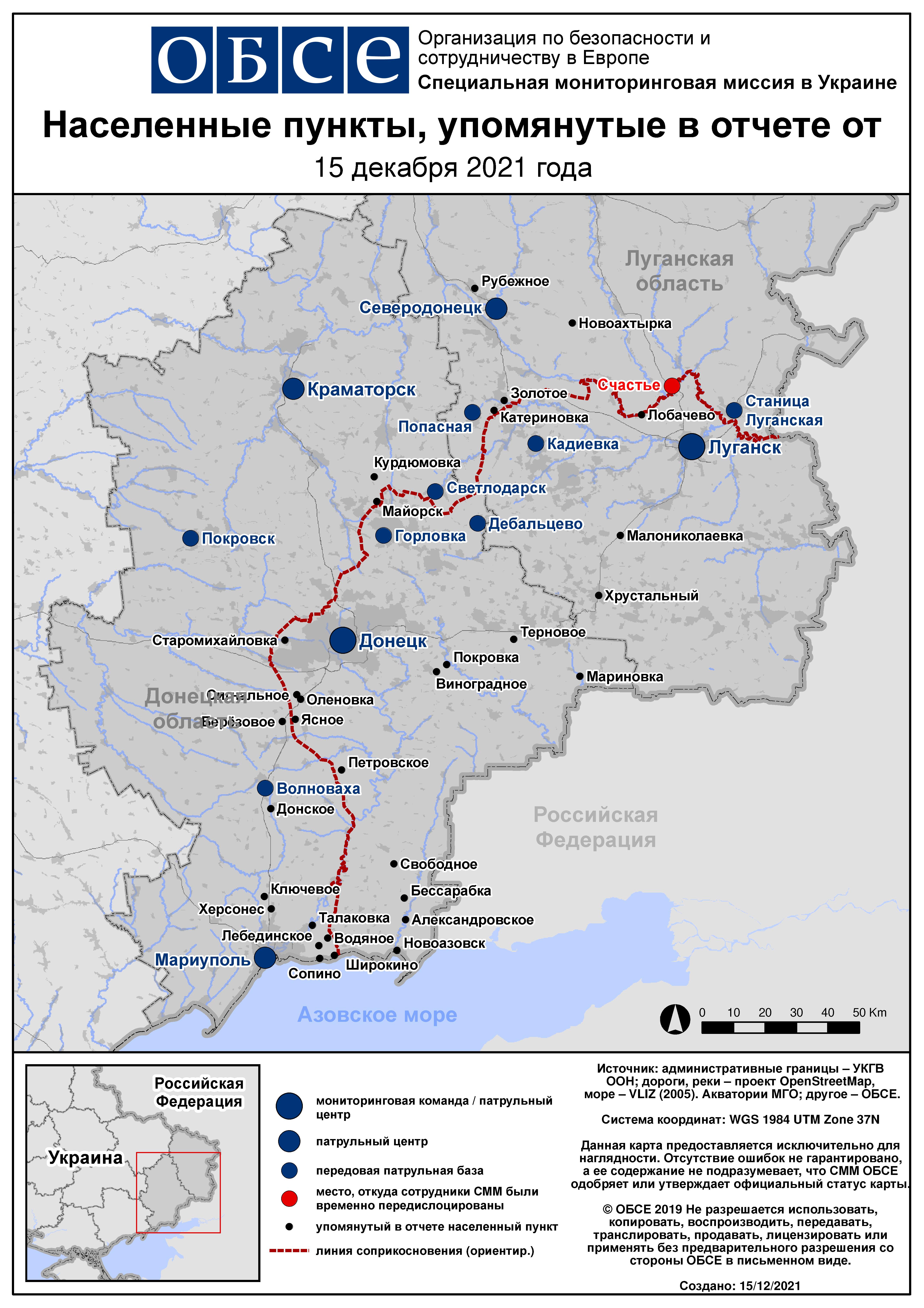 Ежедневный отчет № 294/2021, опубликованный Специальной мониторинговой миссией ОБСЕ в Украине (СММ) 15 декабря 2021 года