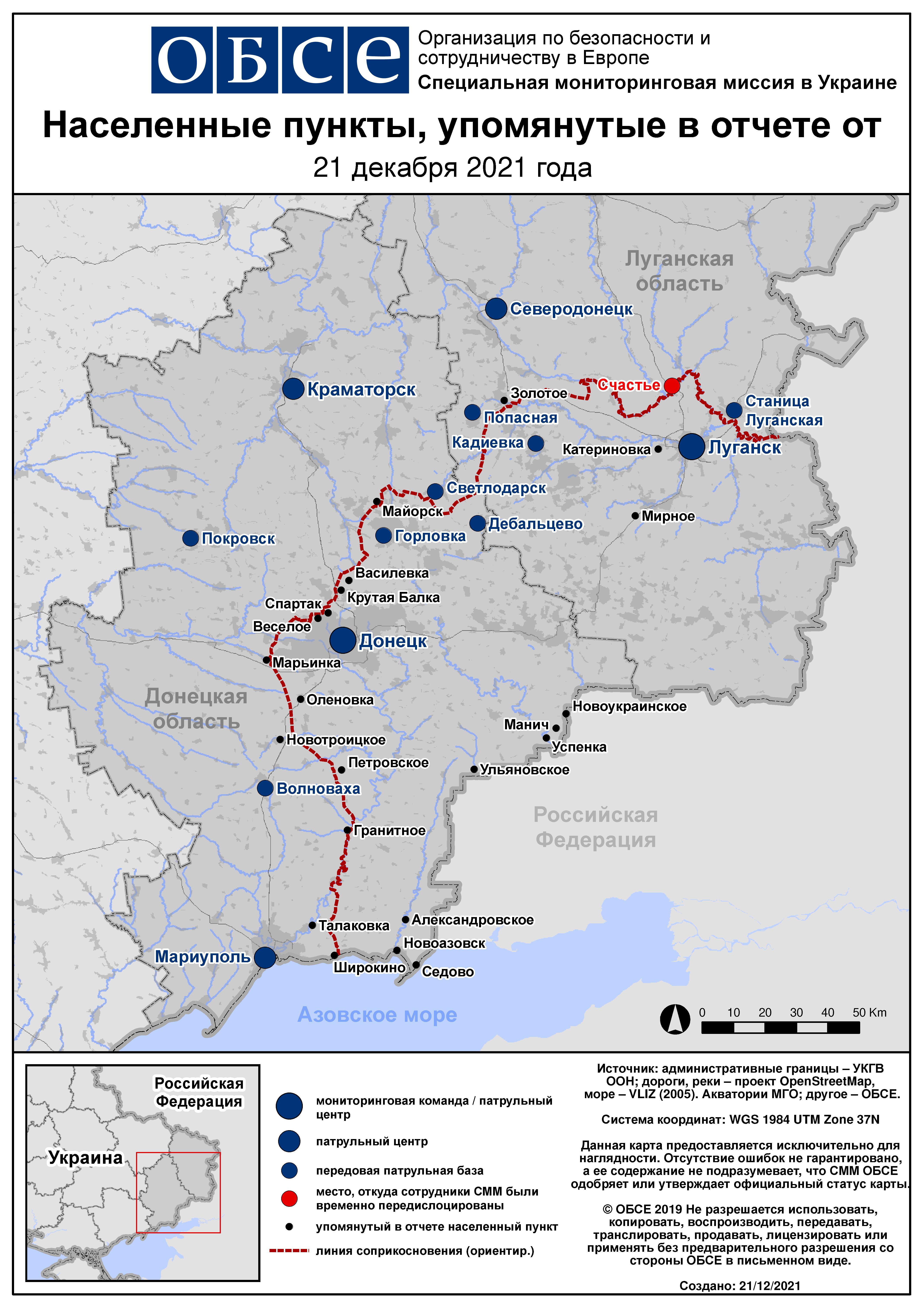 Ежедневный отчет № 299/2021, опубликованный Специальной мониторинговой миссией ОБСЕ в Украине (СММ) 21 декабря 2021 года