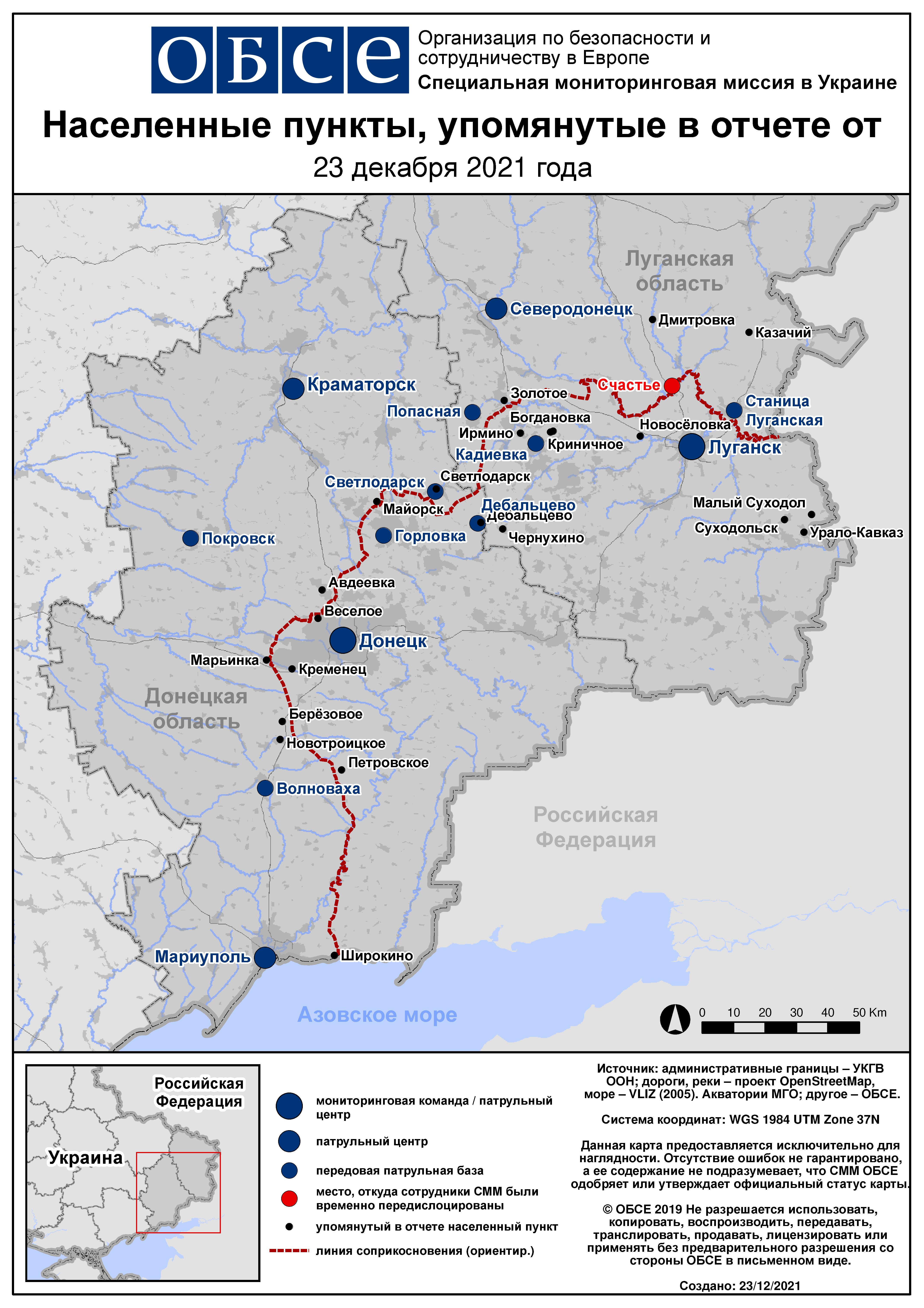 Ежедневный отчет № 301/2021, опубликованный Специальной мониторинговой миссией ОБСЕ в Украине (СММ) 23 декабря 2021 года