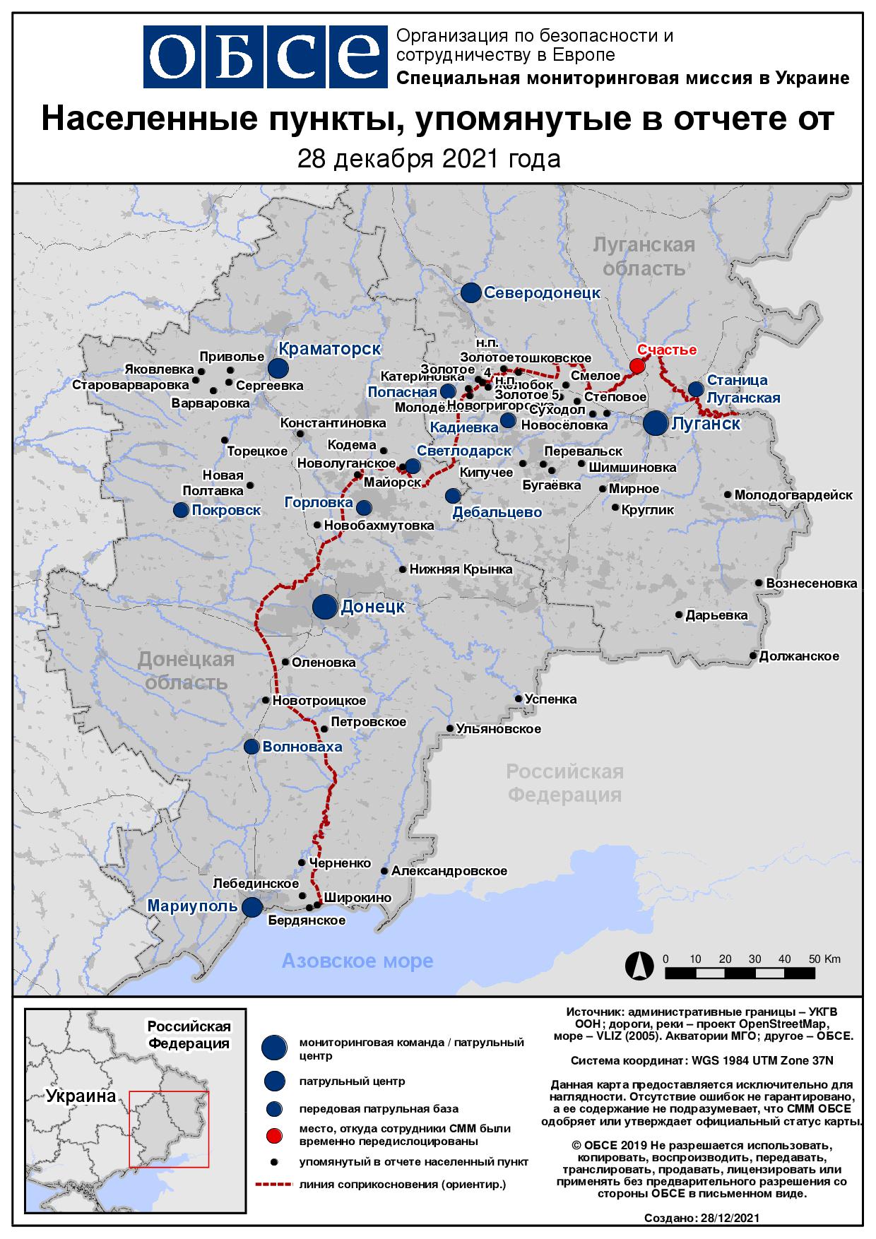 Ежедневный отчет № 303/2021, опубликованный Специальной мониторинговой миссией ОБСЕ в Украине (СММ) 28 декабря 2021 года