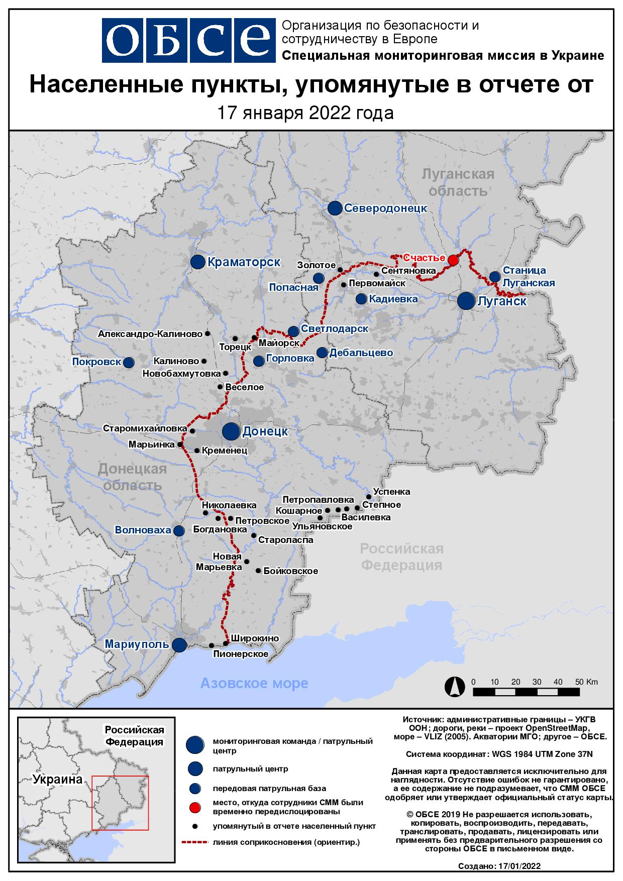 Ежедневный отчет № 10/2022, опубликованный Специальной мониторинговой миссией ОБСЕ в Украине (СММ) 17 января 2022 года