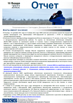 В отчете представлен обзор работы Специальной мониторинговой миссии ОБСЕ (СММ), последние события и новости по состоянию на 10 января 2022 года.
