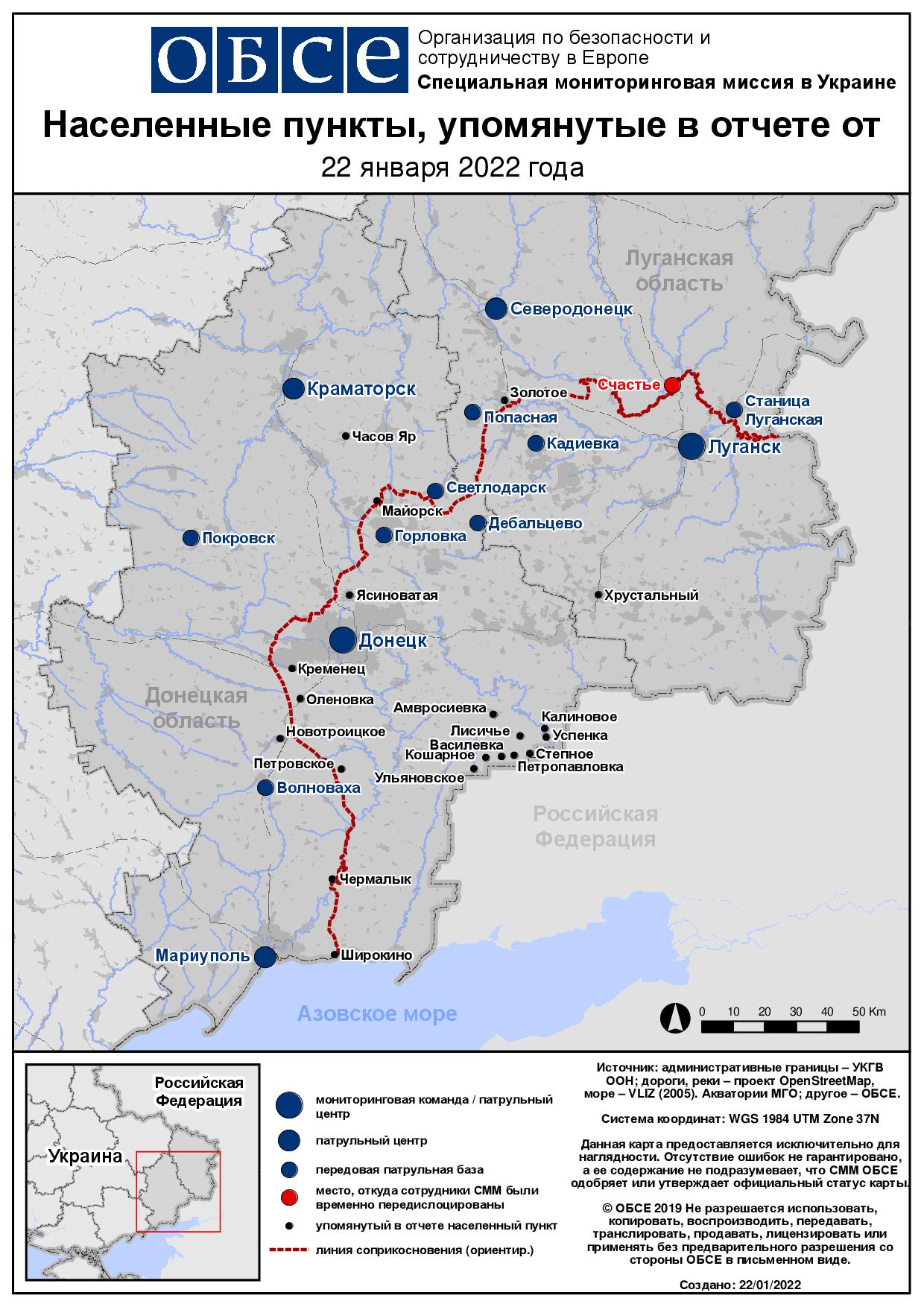 Ежедневный отчет № 15/2022, опубликованный Специальной мониторинговой миссией ОБСЕ в Украине (СММ) 22 января 2022 года