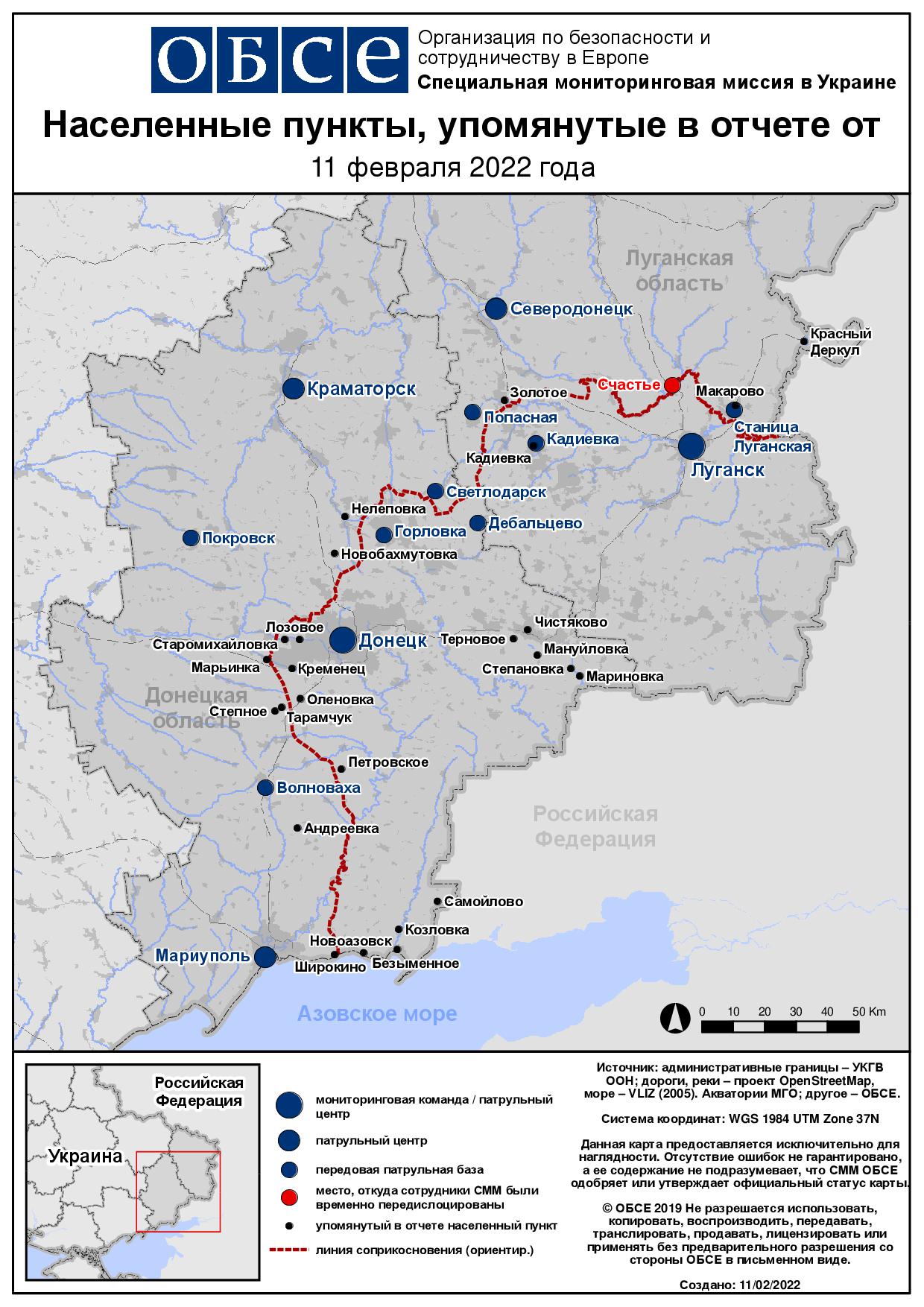 Ежедневный отчет № 32/2022, опубликованный Специальной мониторинговой миссией ОБСЕ в Украине (СММ) 11 февраля 2022 года