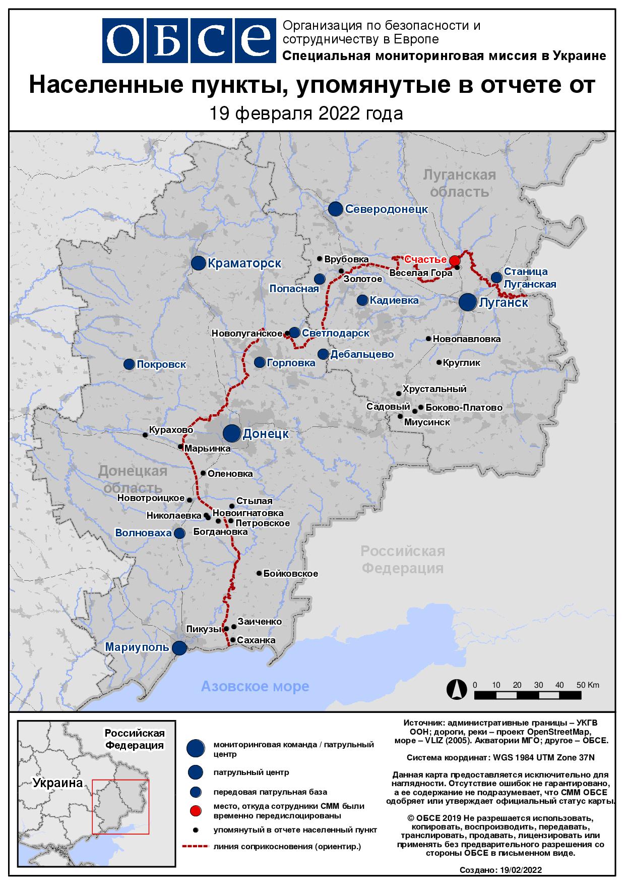 Ежедневный отчет № 39/2022, опубликованный Специальной мониторинговой миссией ОБСЕ в Украине (СММ) 19 февраля 2022 года