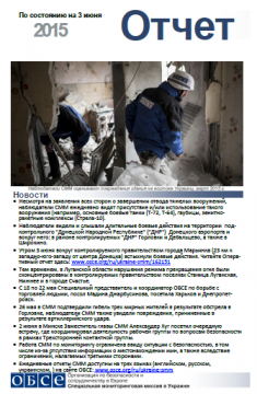 В отчете представлен обзор Специальной Мониторинговой Миссии (СММ) ОБСЕ, последние события и новости по состоянию на 3 июня 2015.